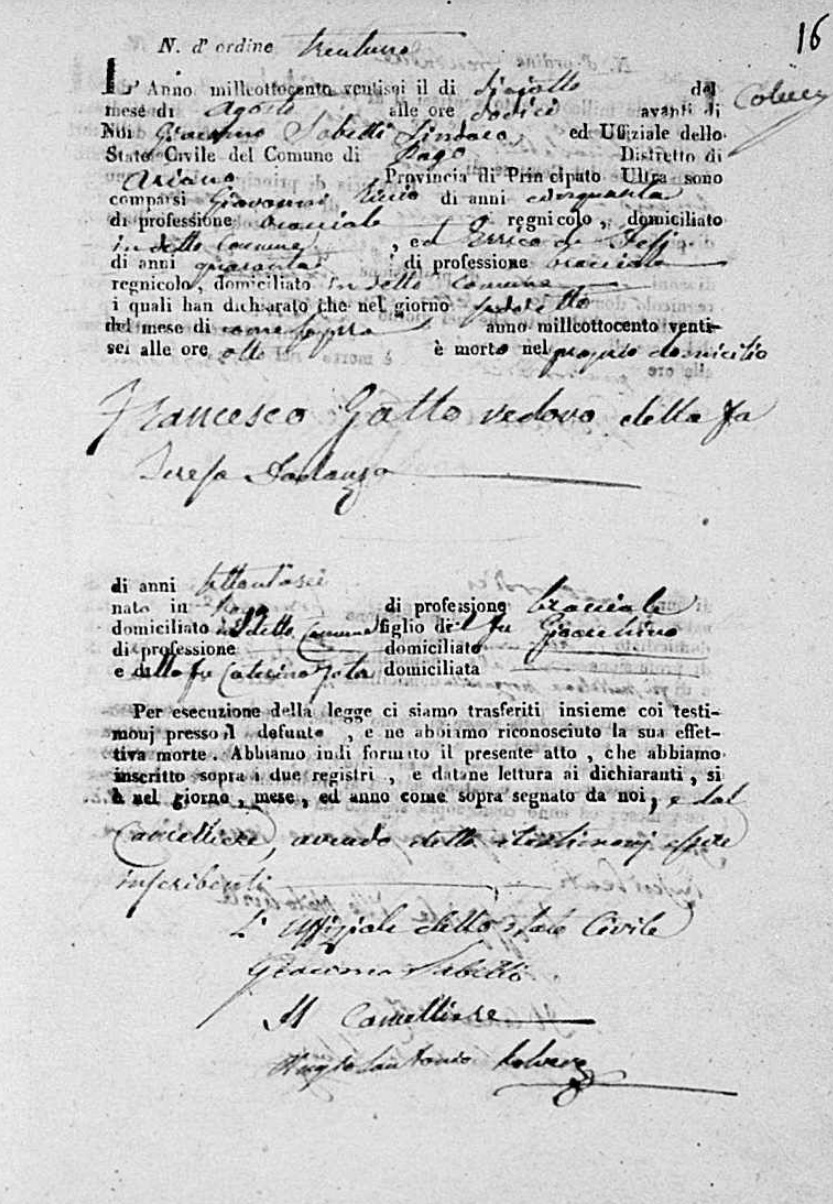 Francesco Gatto was born in 1750 in Pago Veiano, Benevento, Campania, Italy. He and