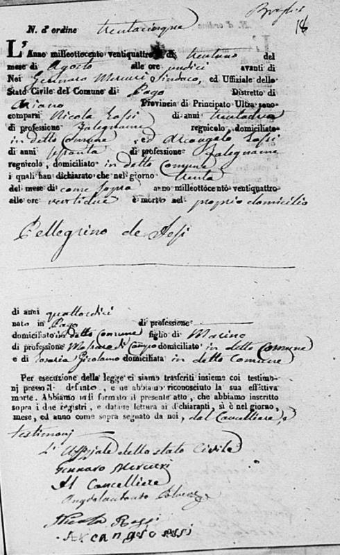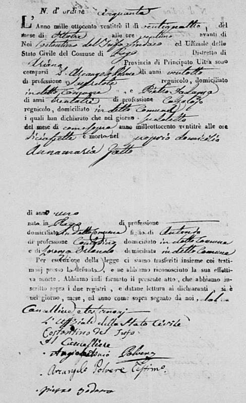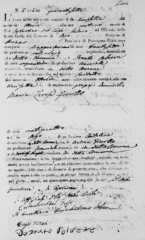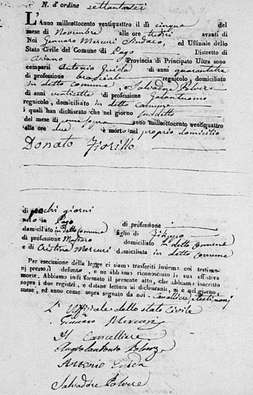Teresa Iadanza were married. He died on August 18, 1826, at age ~76, in Pago Veiano, Benevento, Campania, Italy.