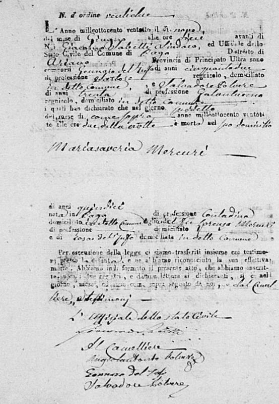 Ignazio Mercuri was born in 1811 in Pago Veiano, Benevento, Campania, Italy. He died on January 29, 1827, at age ~16, in Pago Veiano, Benevento, Campania, Italy.