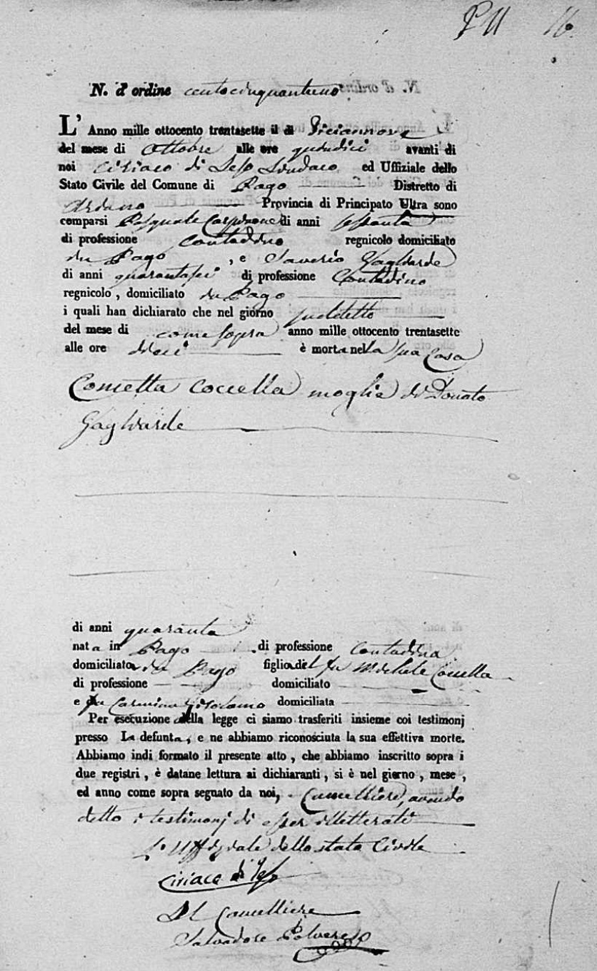 Donato Gagliardi were married. She died on October 19, 1837, at age ~40, in Pago Veiano, Benevento, Campania, Italy.