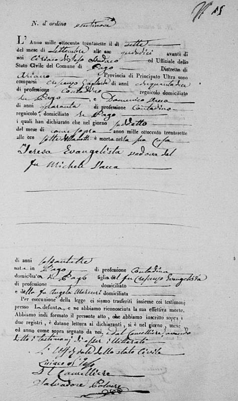 Michele Vacca were married. She died on September 7, 1837, at age ~63, in Pago Veiano, Benevento, Campania, Italy.