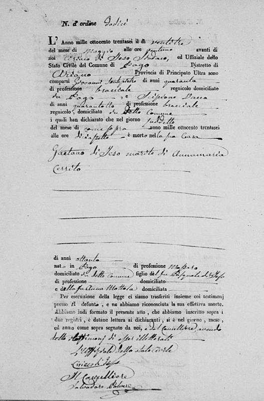 Annamaria Cerrito were married. He died on May 23, 1836, at age ~80, in Pago Veiano, Benevento, Campania, Italy.