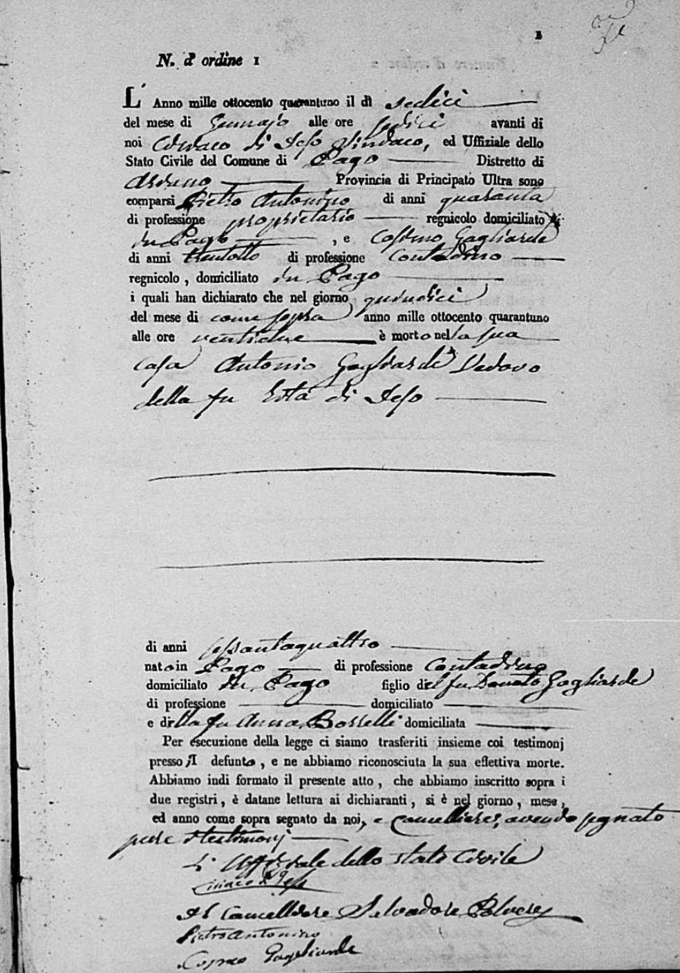Antonio Gagliardi was born in 1777 in Pago Veiano, Benevento, Campania, Italy. He and