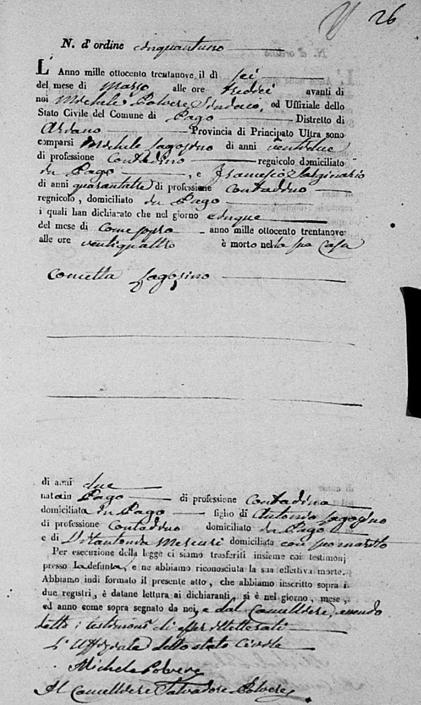 Concetta Lagozino was born in 1837 in Pago Veiano, Benevento, Campania, Italy. She died on March 5, 1839, at age ~2, in Pago Veiano, Benevento, Campania, Italy.