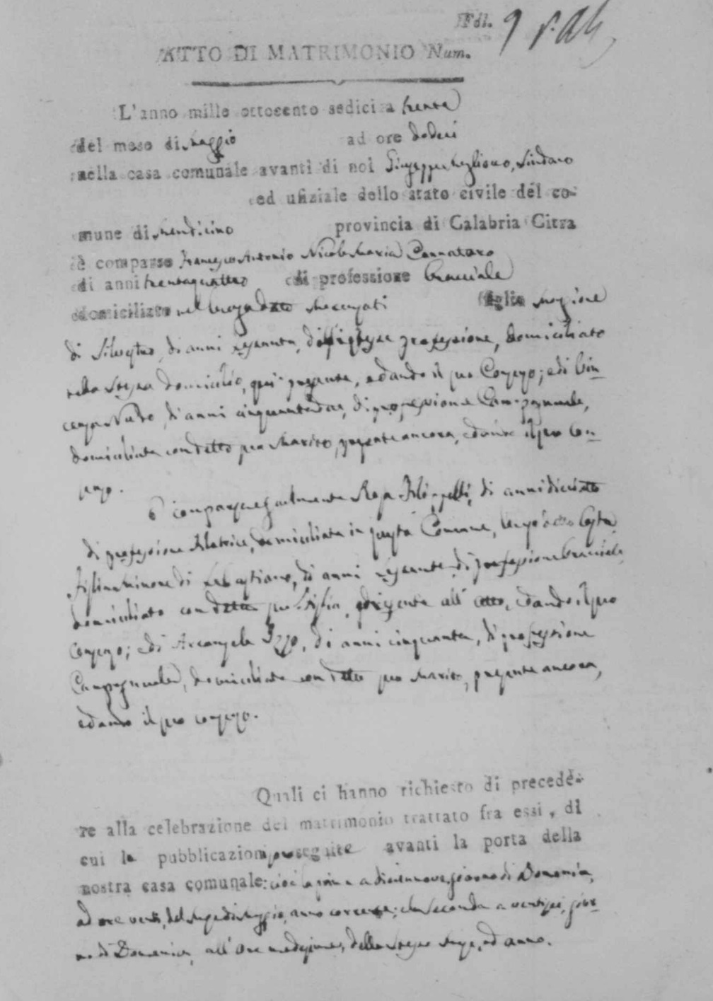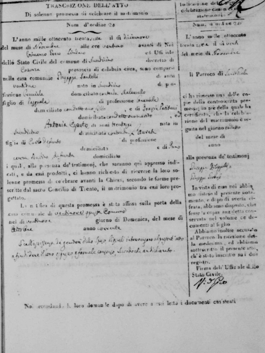 Antonia Caputo were married on November 20, 1837 in Mendicino, Cosenza, Calabria, Italy. He and