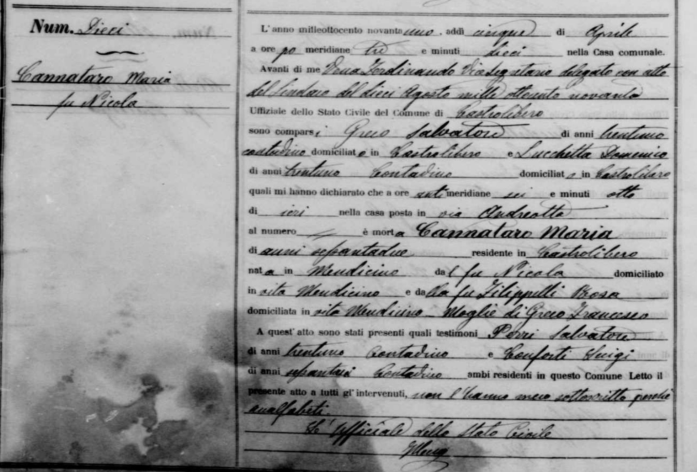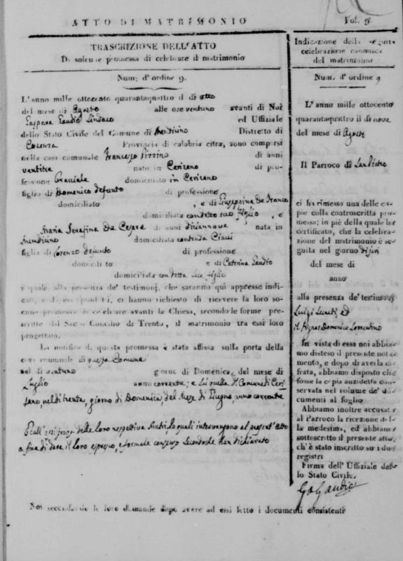 Maria Serafina De Cesare (De Cesaro) were married on August 9, 1844 in Mendicino, Cosenza, Calabria, Italy. He died in Italy.