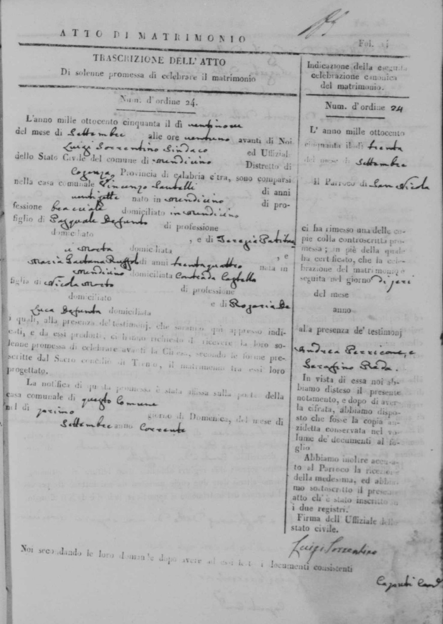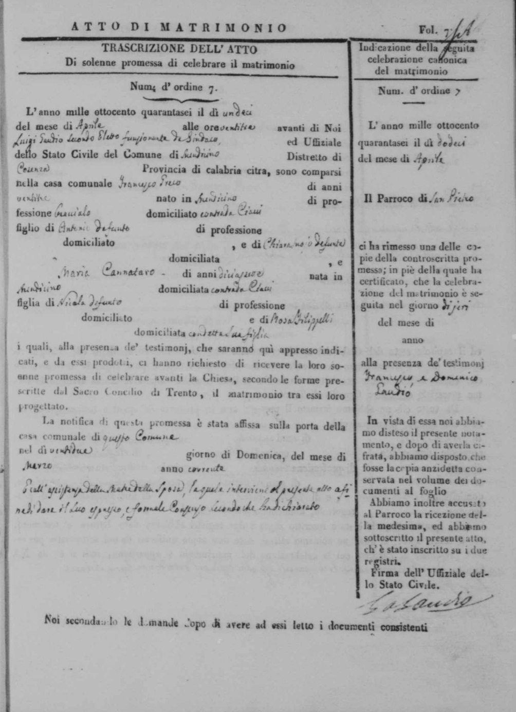 Innocenza Ruffolo were married on August 13, 1846 in Mendicino, Cosenza, Calabria, Italy. He died in Italy.