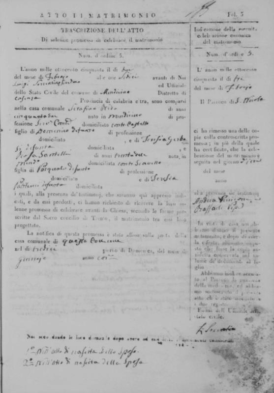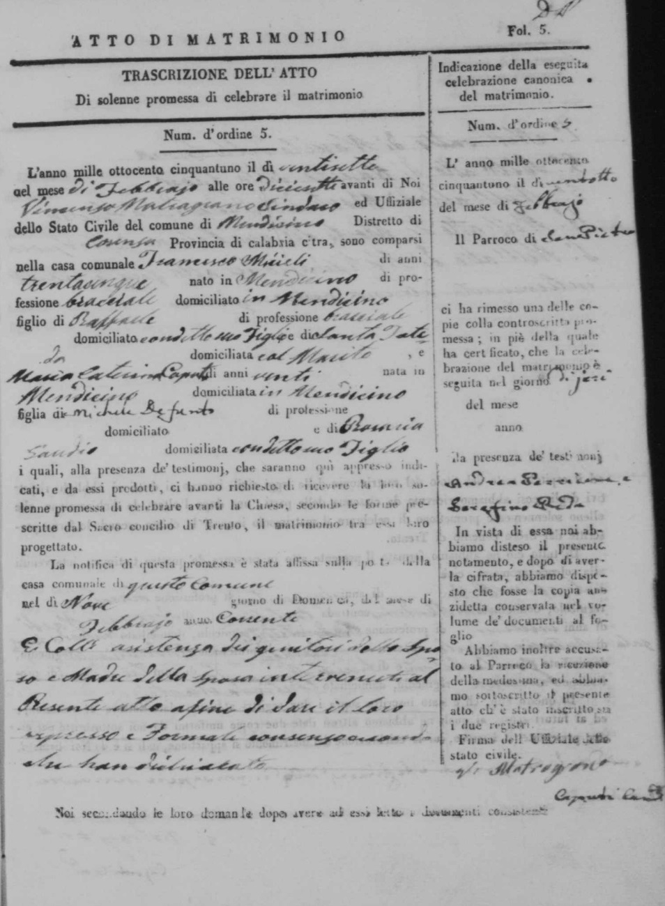 Rosa Santelli were married on February 3, 1850 in Mendicino, Cosenza, Calabria, Italy. He died in Italy.
