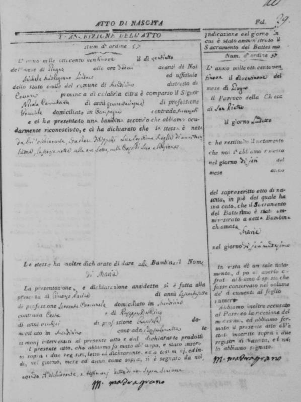 Maria Connataro was born on June 28, 1829 in Mendicino, Cosenza, Calabria, Italy. She and