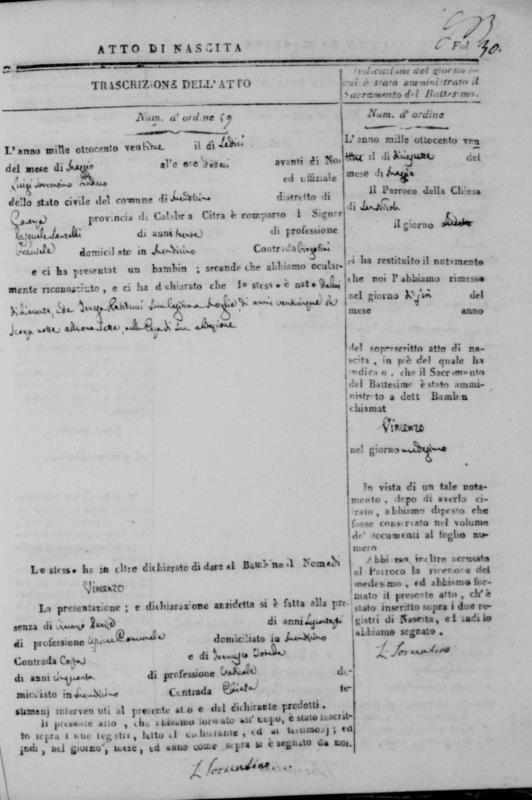Serafino Reda was born in 1798 in Mendicino, Cosenza, Calabria, Italy. He and