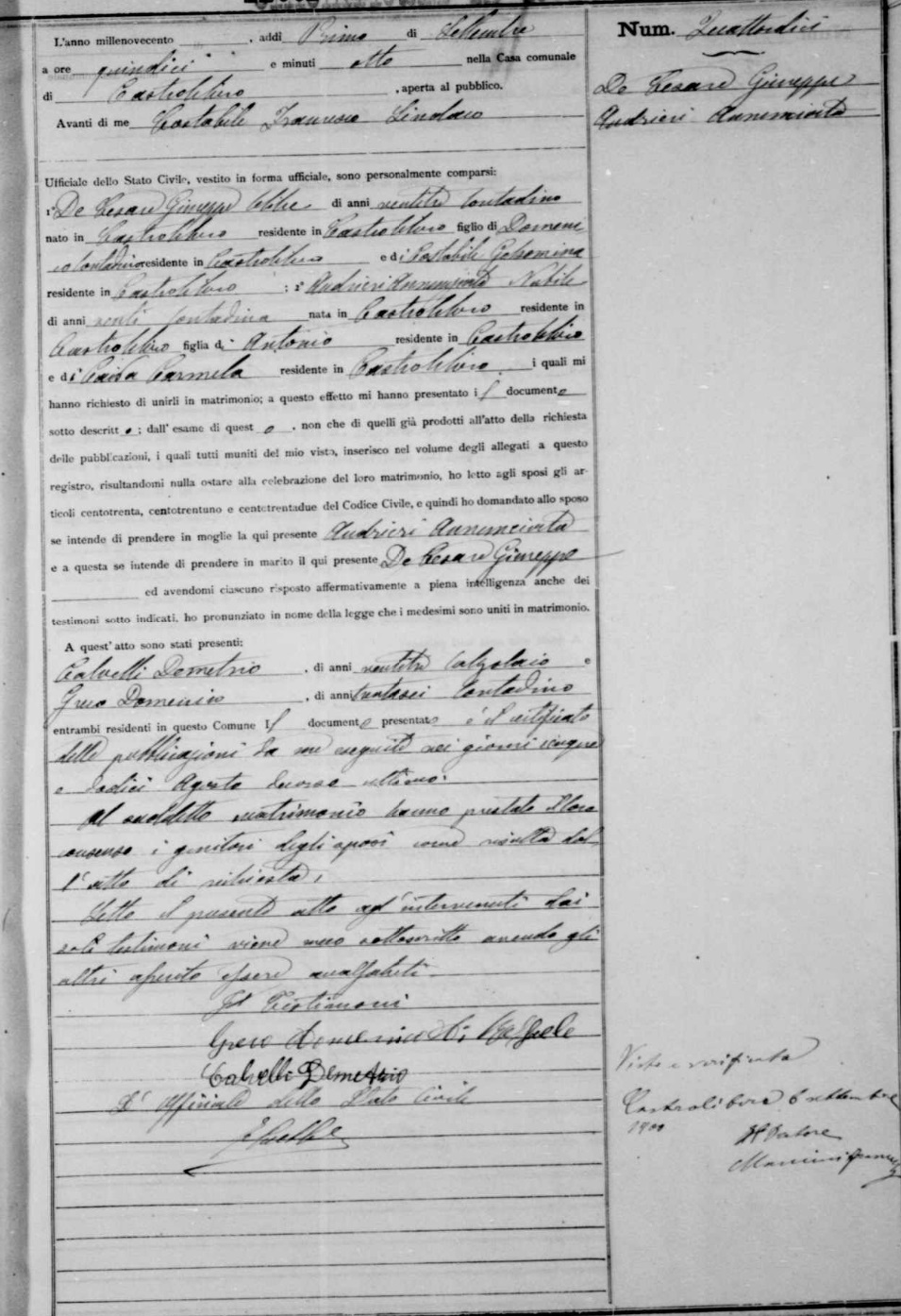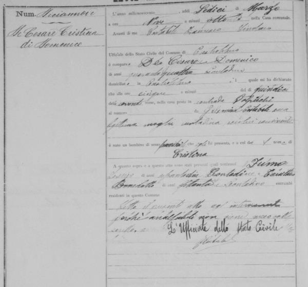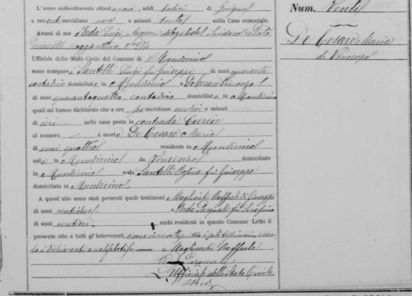 Domenico De Cesare (De Cesaro) were married on September 26, 1875 in Castrolibero, Cosenza, Calabria, Italy. She died.