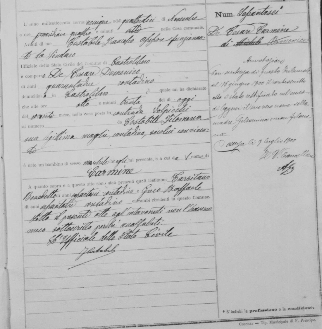 Domenico De Cesare (De Cesaro) was born in 1851 in Cosenza, Cosenza, Calabria, Italy. He and