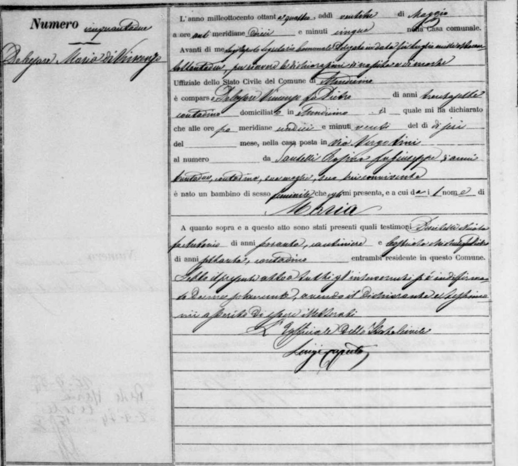 | Daughter | Vincenzina De Cesare (De Cesaro) Born: November 17, 1894, Died: January 15, 1895 |