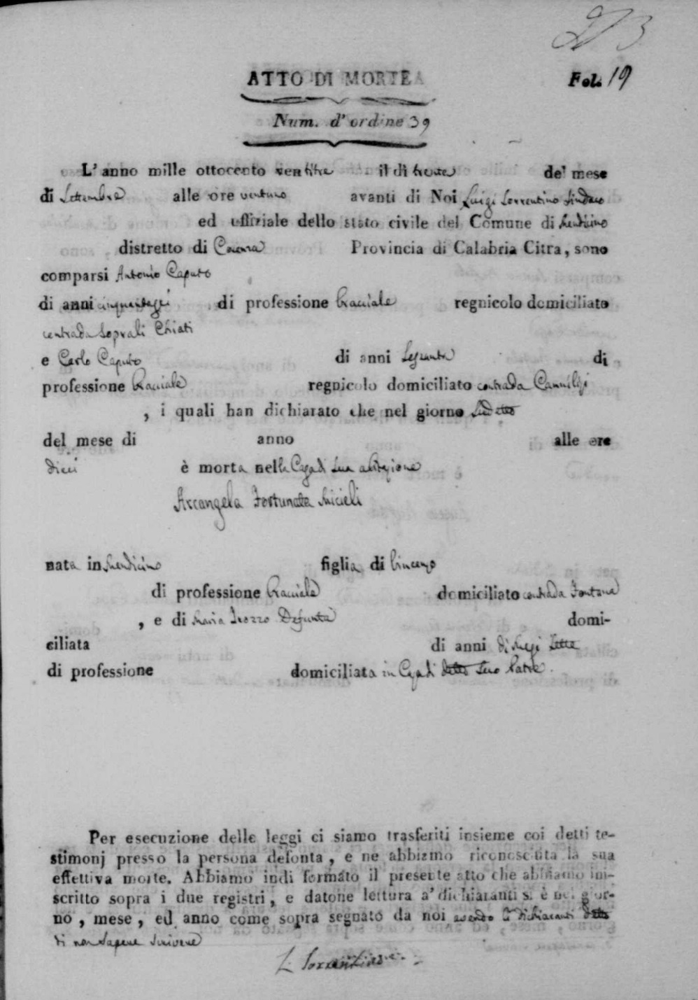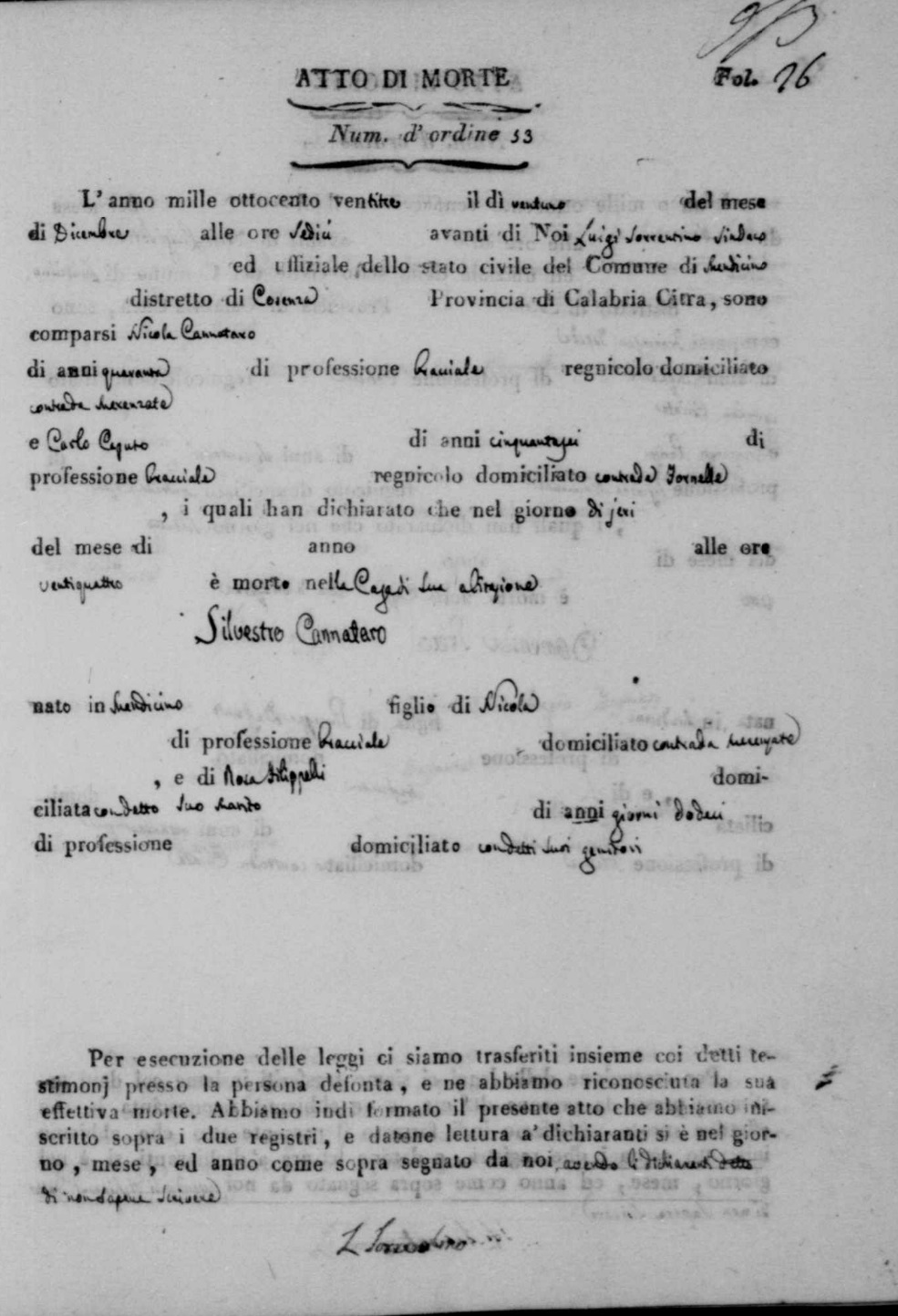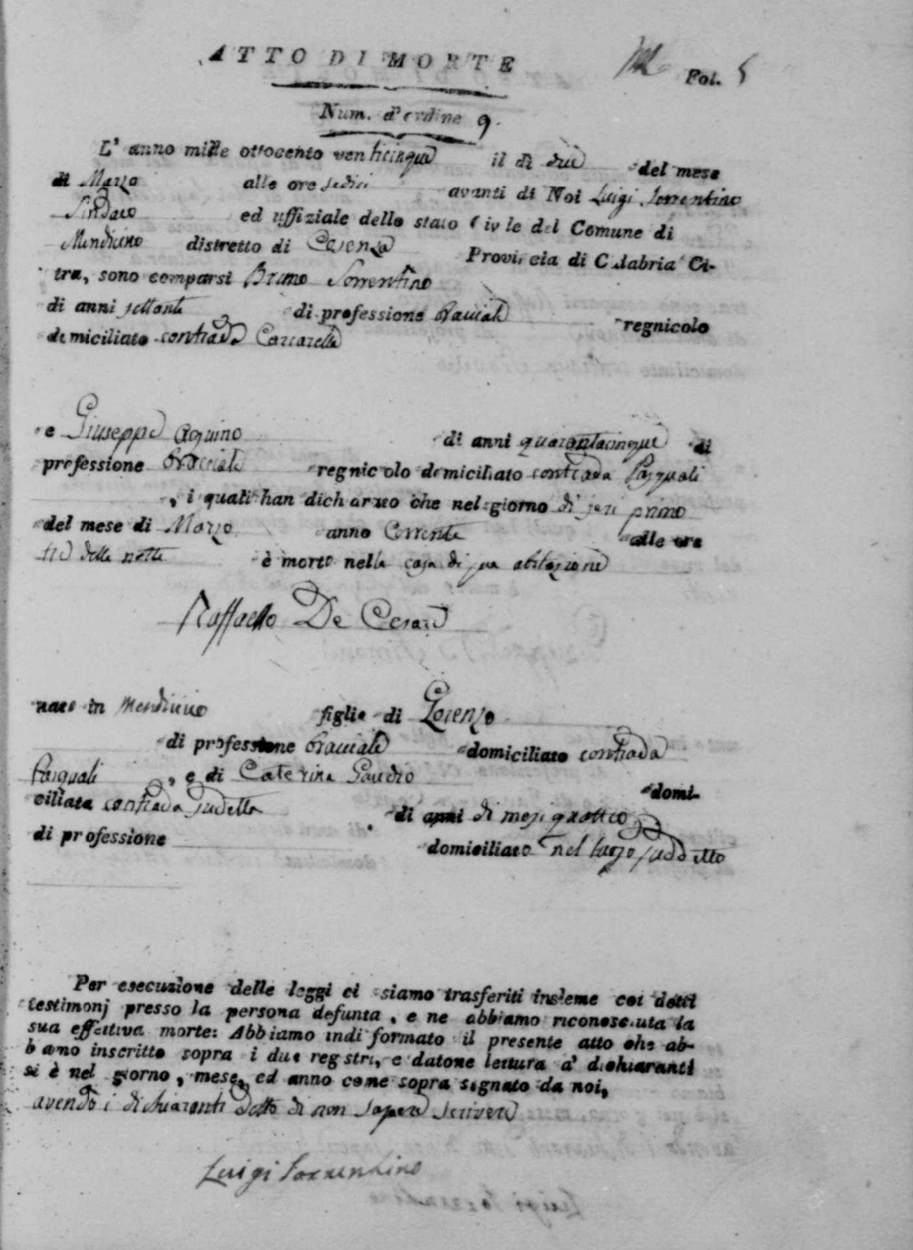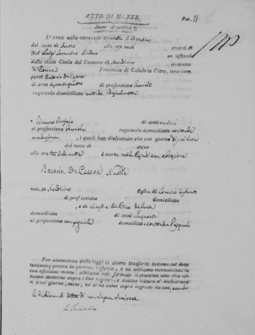 Rosaria De Cesare (De Cesaro) were married on August 20, 1811 in Mendicino, Cosenza, Calabria, Italy. He died in Italy.