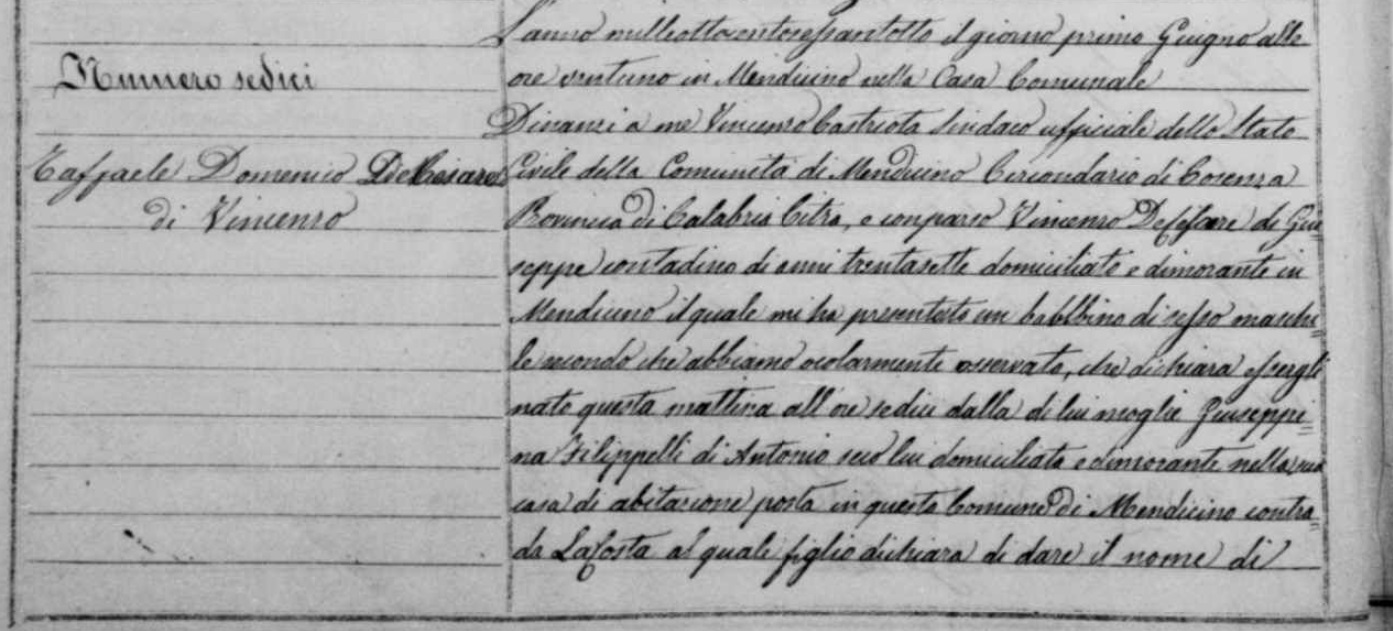 Raffaele Domenico De Cesare (De Cesaro) was born on June 1, 1868 in Mendicino, Cosenza, Calabria, Italy. He died on November 26, 1868, at age 0, in Mendicino, Cosenza, Calabria, Italy.