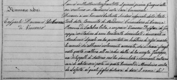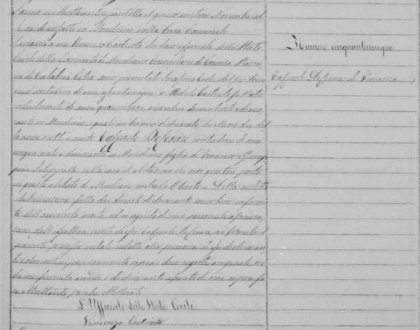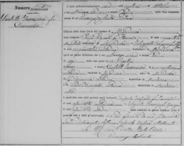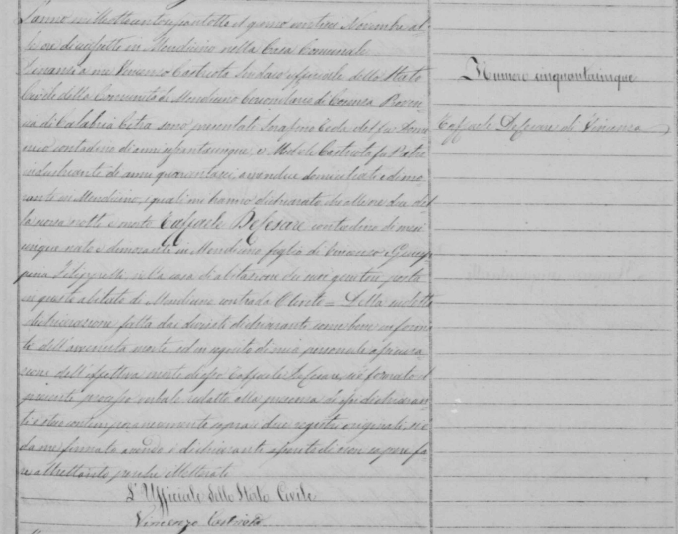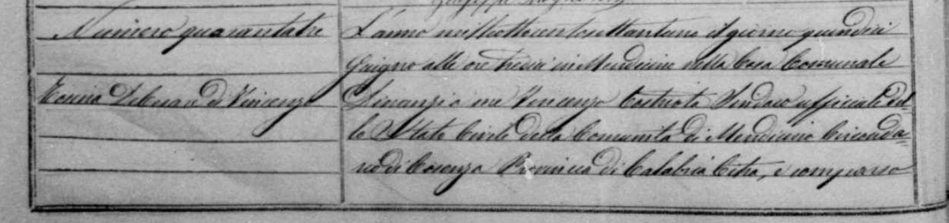 Vincenzo De Cesare (De Cesaro) was born on December 31, 1830 in Mendicino, Cosenza, Calabria, Italy. He was married. He and