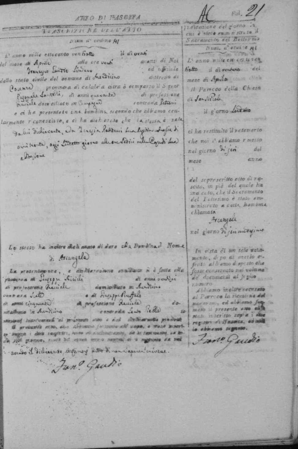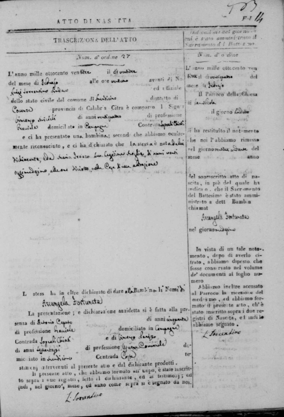 Areangela Santelli was born on April 20, 1828 in Mendicino, Cosenza, Calabria, Italy. She and
