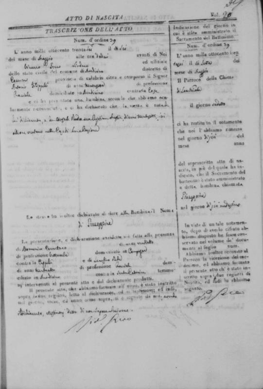 Rosaria De Cesare (De Cesaro) was born in 1783 in Mendicino, Cosenza, Calabria, Italy. She and