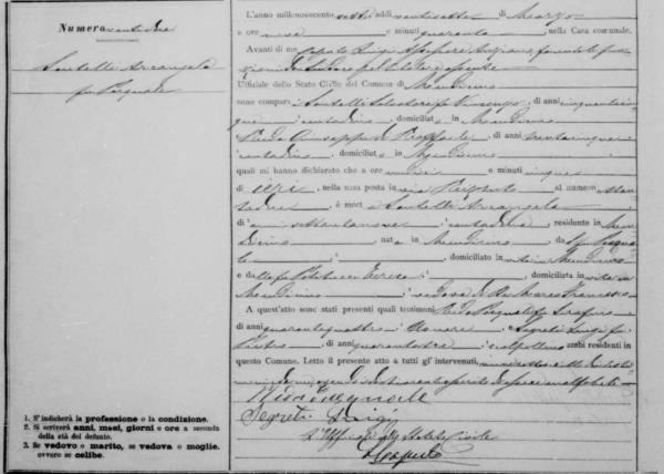 Francesco De Rosa were married. She died on March 9, 1907, at age 78, in Mendicino, Cosenza, Calabria, Italy.
