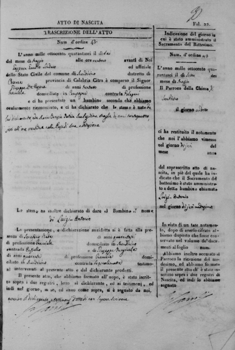 Luigi Antonio De Cesare (De Cesaro) was born on May 6, 1846 in Mendicino, Cosenza, Calabria, Italy. He died in Italy.