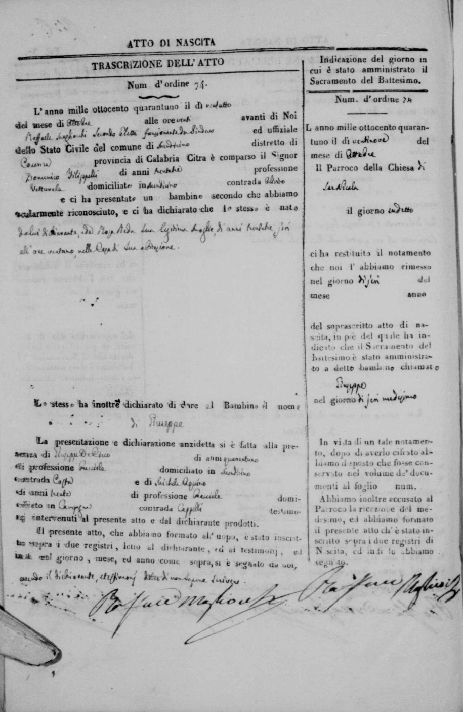 Michele Filippelli was born on May 11, 1844 in Mendicino, Cosenza, Calabria, Italy. He died in Italy.
