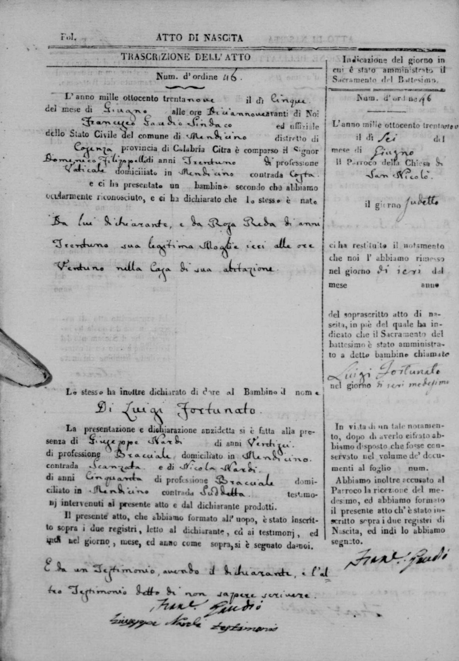 Luigi Fortunato Filippelli was born on June 5, 1839 in Mendicino, Cosenza, Calabria, Italy. He died in Italy.
