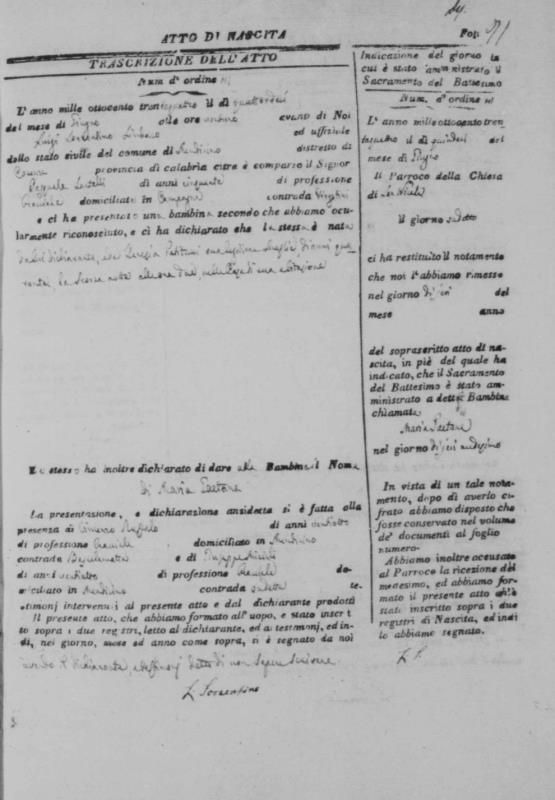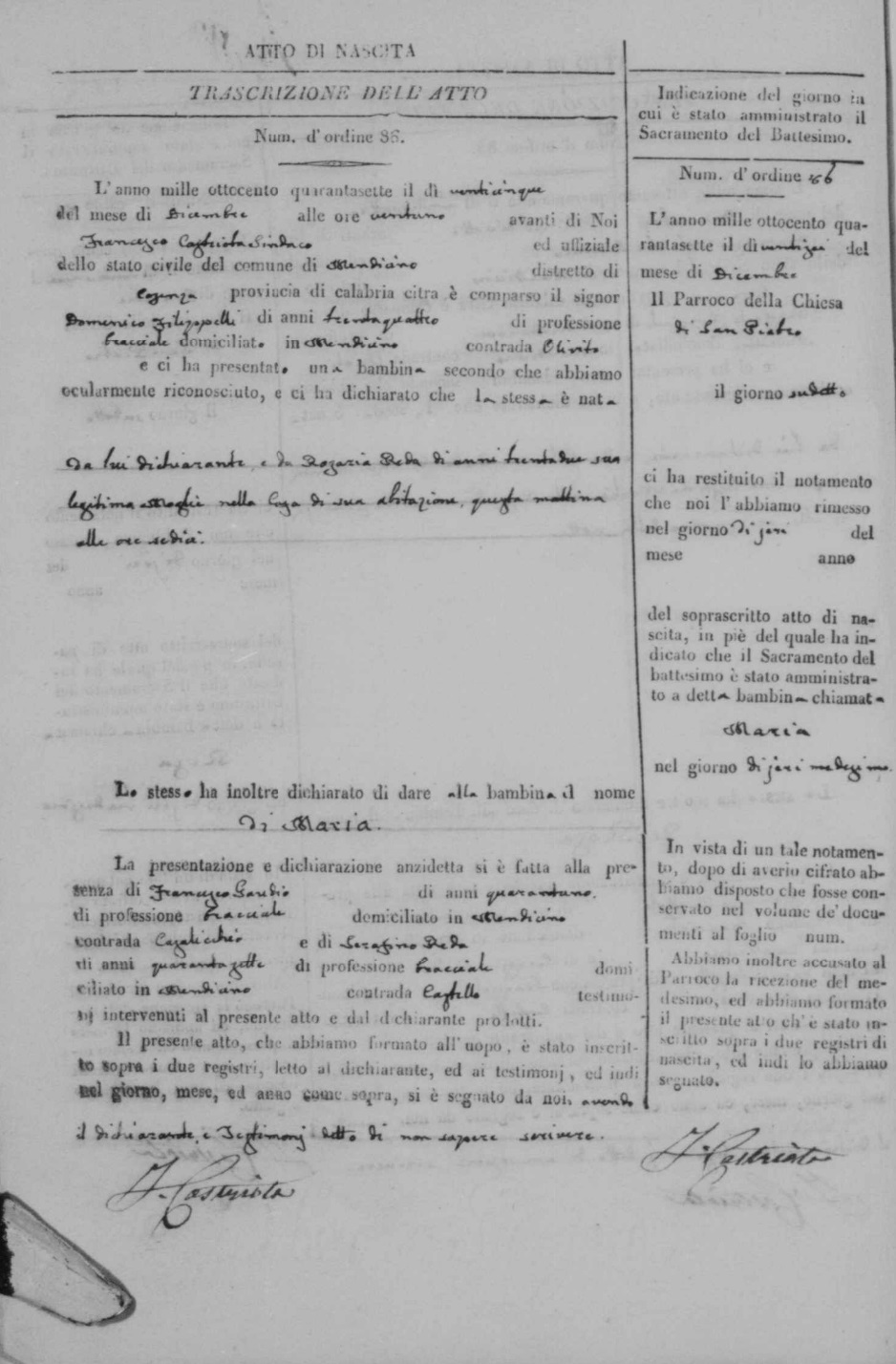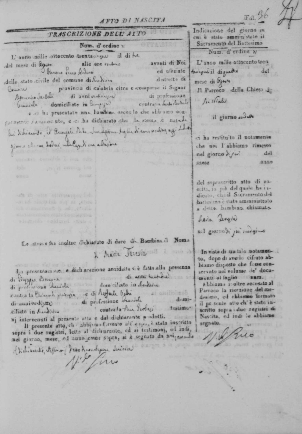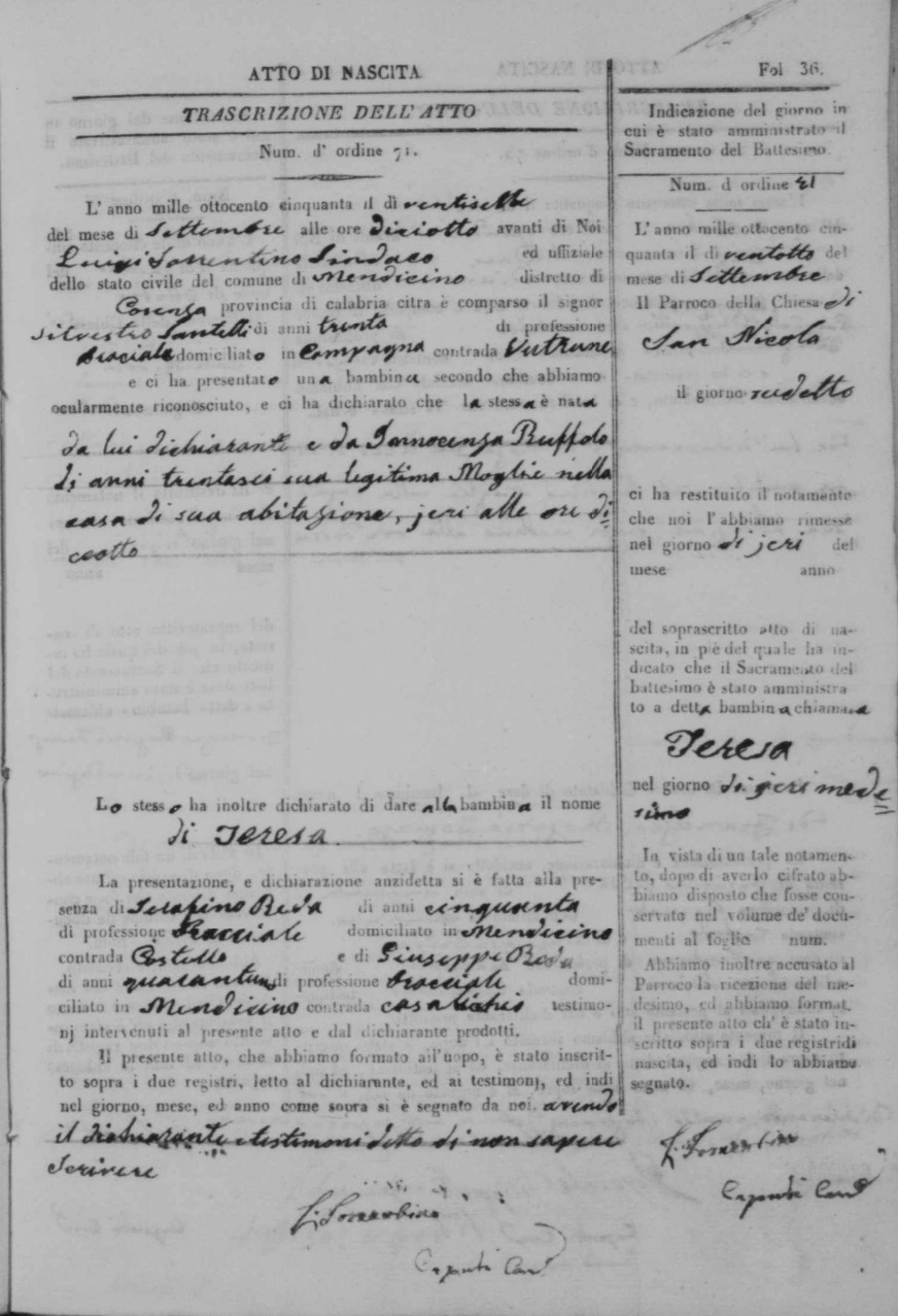 Maria Teresia Santelli was born on August 3, 1835 in Mendicino, Cosenza, Calabria, Italy. She died in Italy.