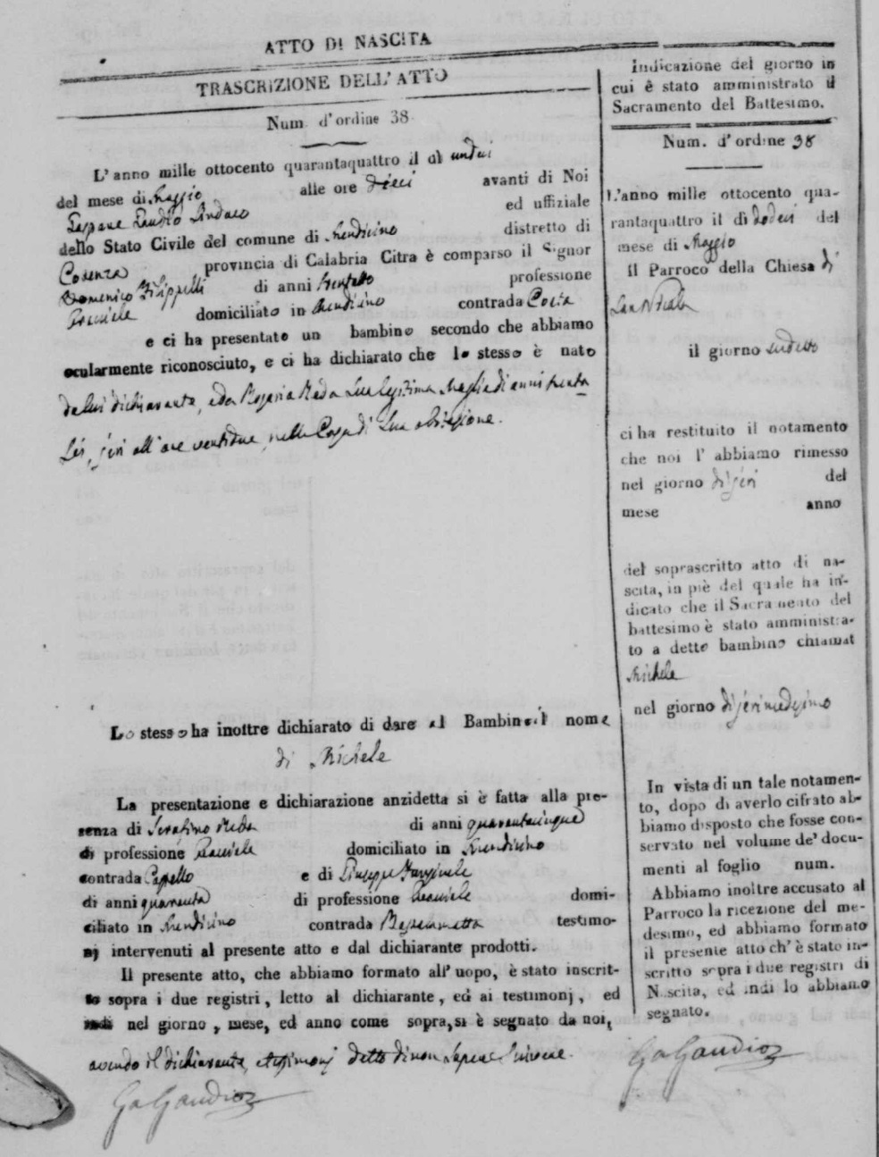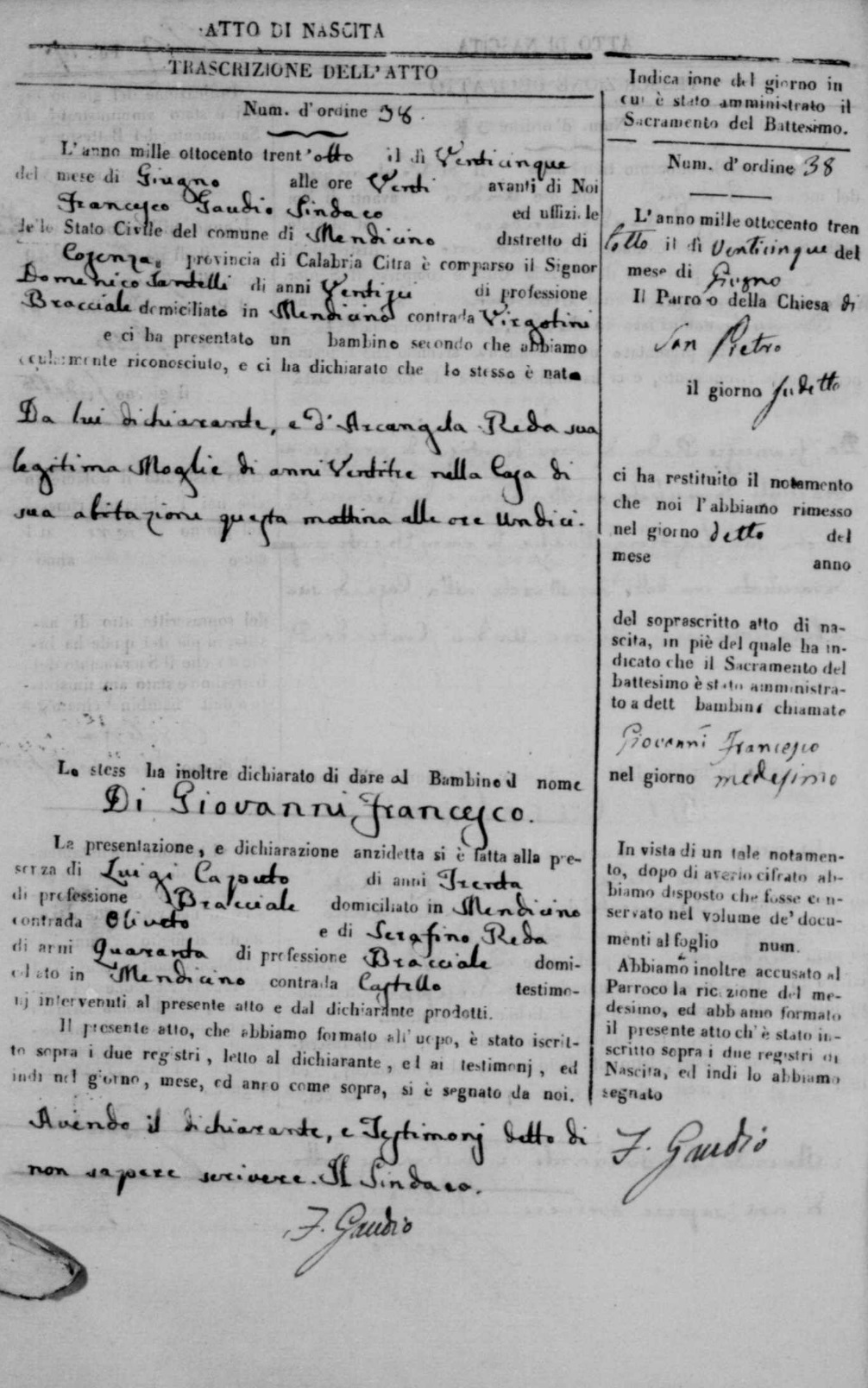 Giovanni Francesco Santelli was born on June 25, 1838 in Mendicino, Cosenza, Calabria, Italy. He died in Italy.