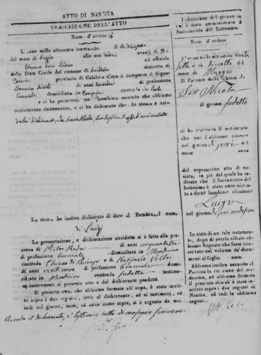 Luigi Micieli was born on May 17, 1837 in Mendicino, Cosenza, Calabria, Italy. He died in Italy.