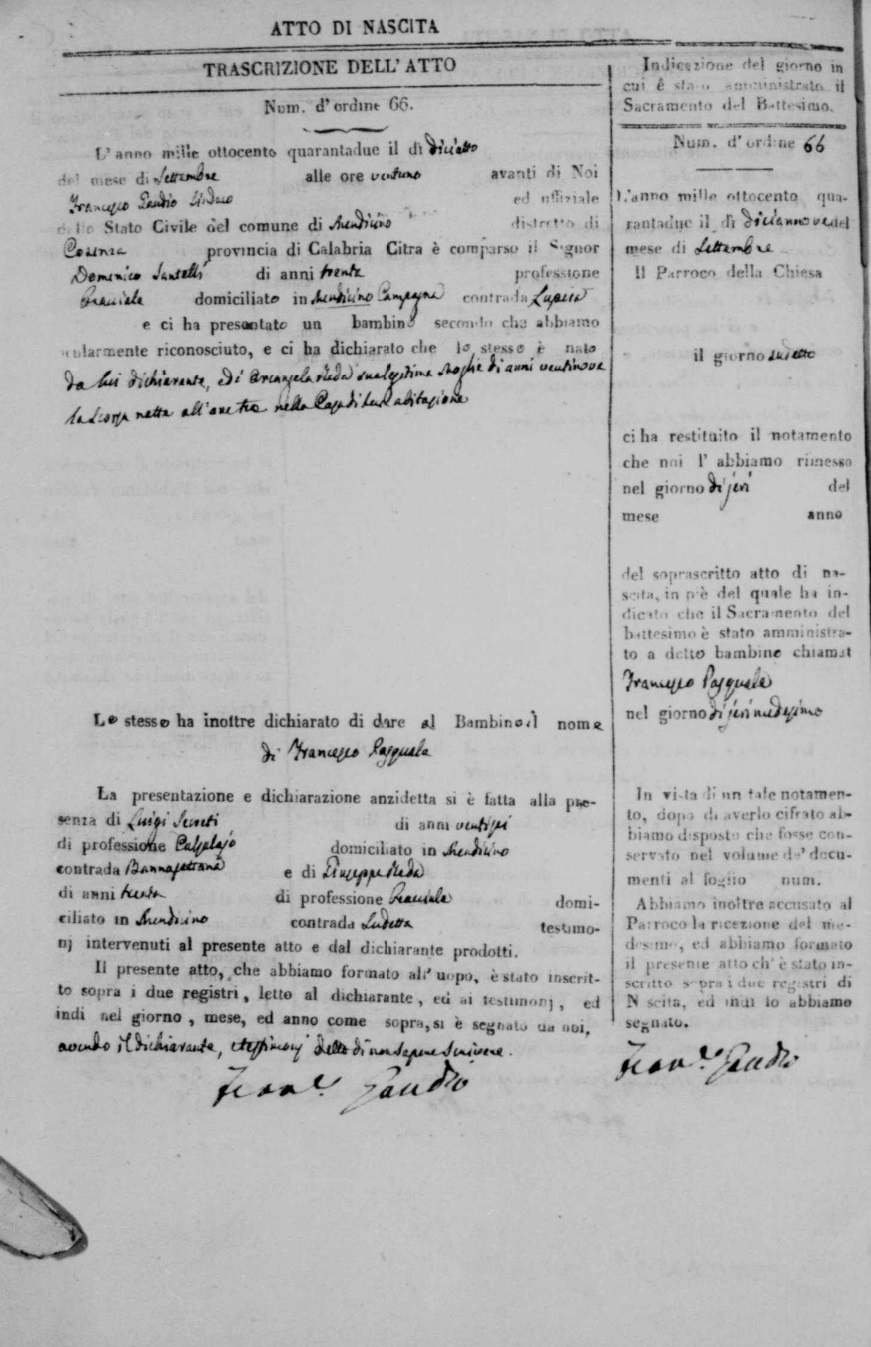 Francesco Pasquale Santelli was born on September 17, 1842 in Mendicino, Cosenza, Calabria, Italy. He died in Italy.