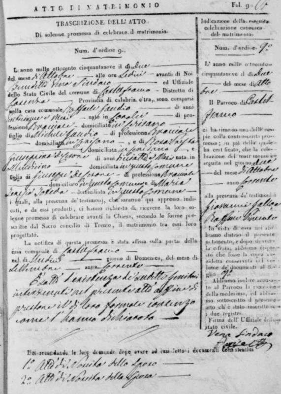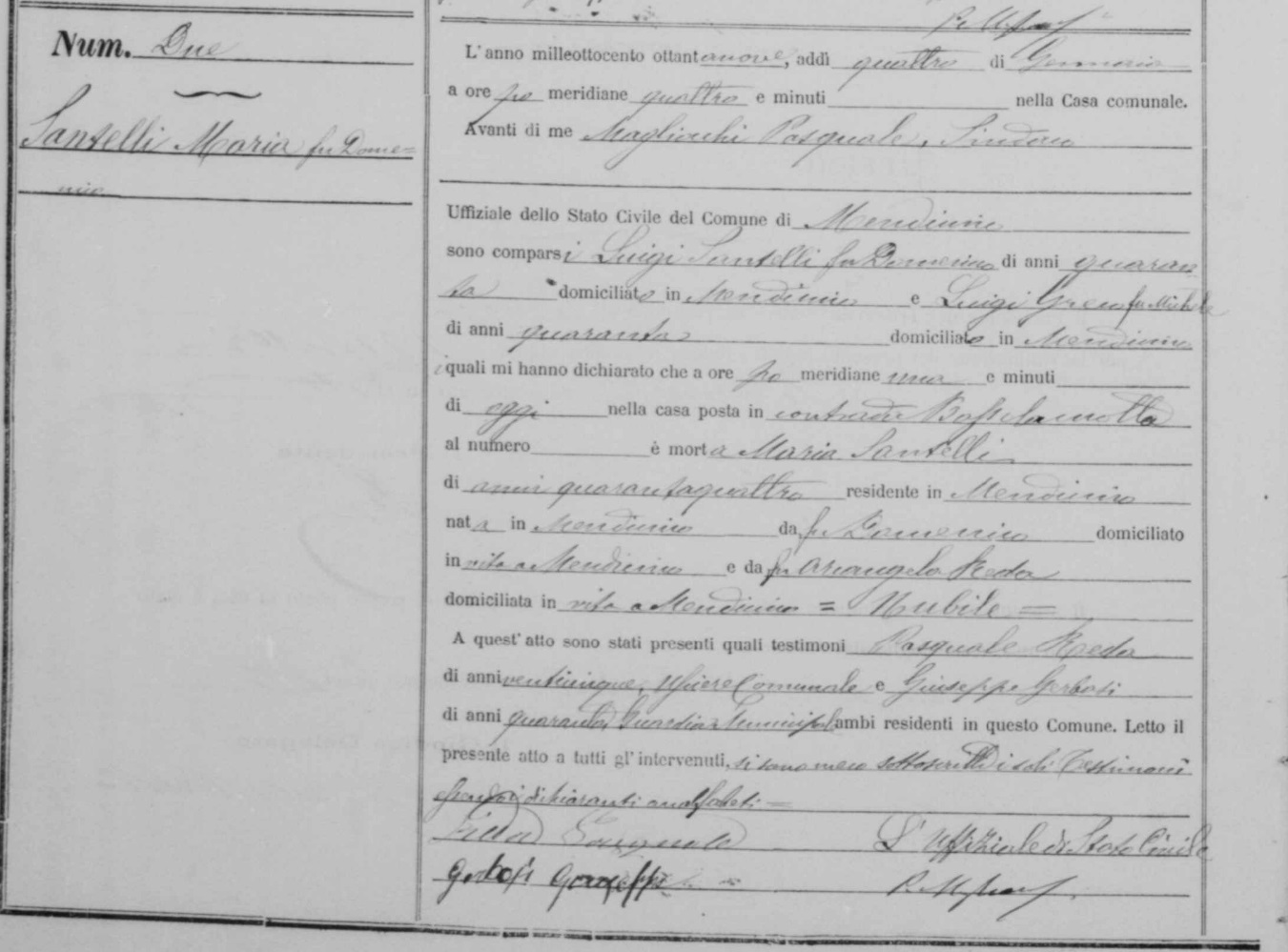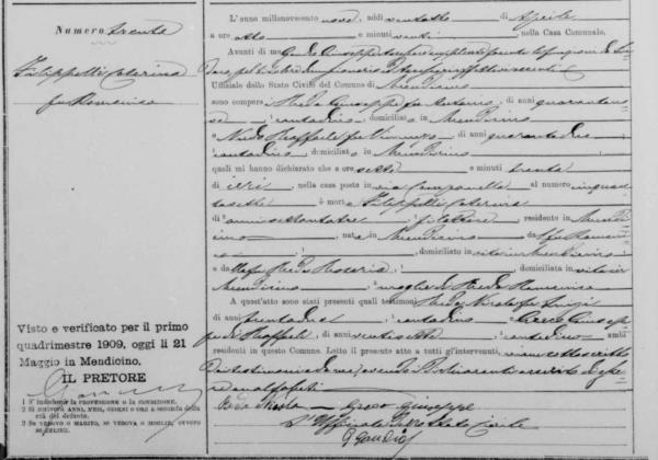 Domenico Reda were married. She died on April 28, 1909, at age 71, in Mendicino, Cosenza, Calabria, Italy.