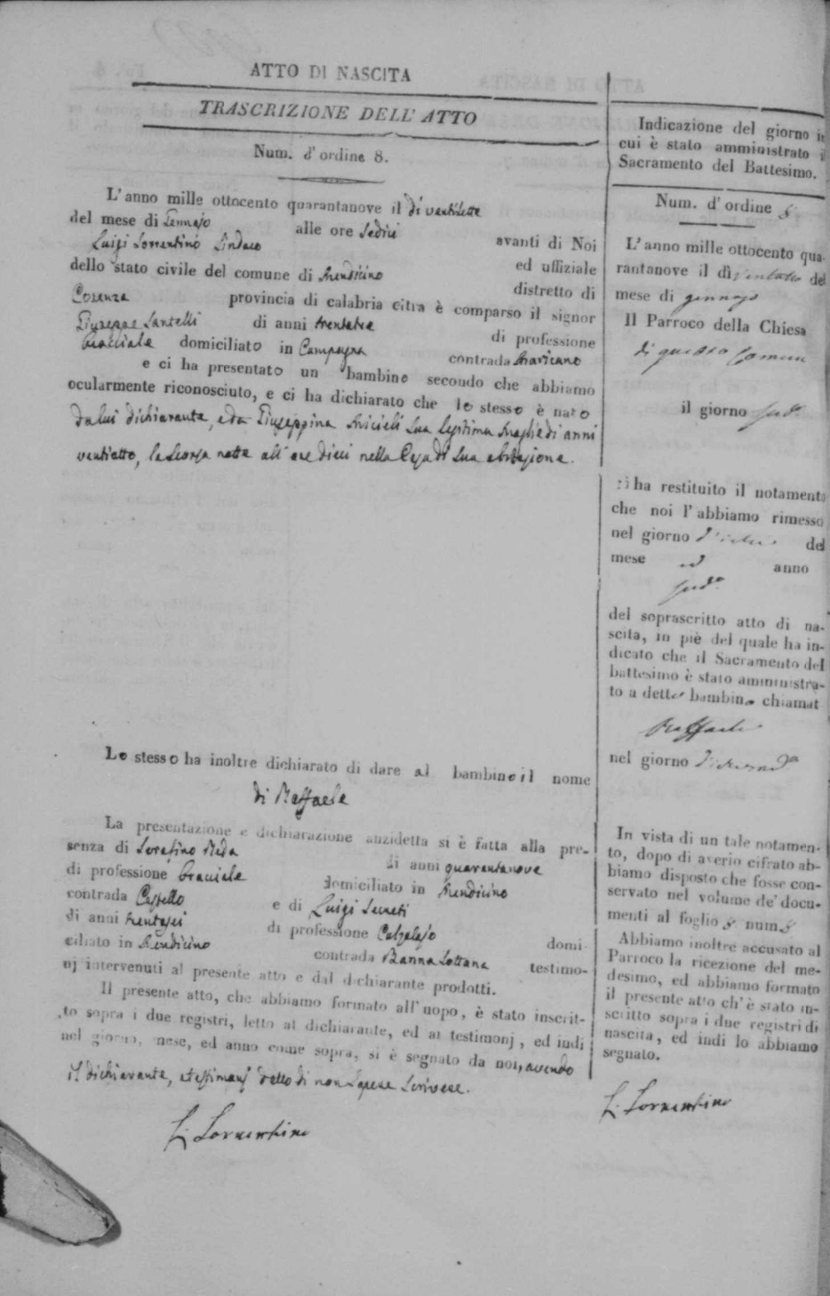 Rafaele Santelli was born on January 27, 1849 in Mendicino, Cosenza, Calabria, Italy. He died in Italy.