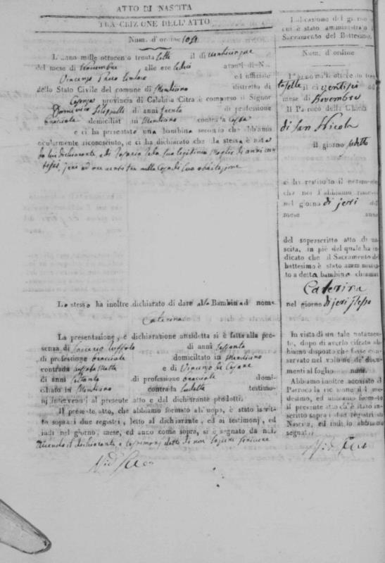 Caterina Filippelli was born on November 25, 1837 in Mendicino, Cosenza, Calabria, Italy. She and