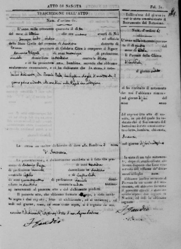 Innocenza Filippelli was born on October 3, 1840 in Mendicino, Cosenza, Calabria, Italy. She died in Italy.