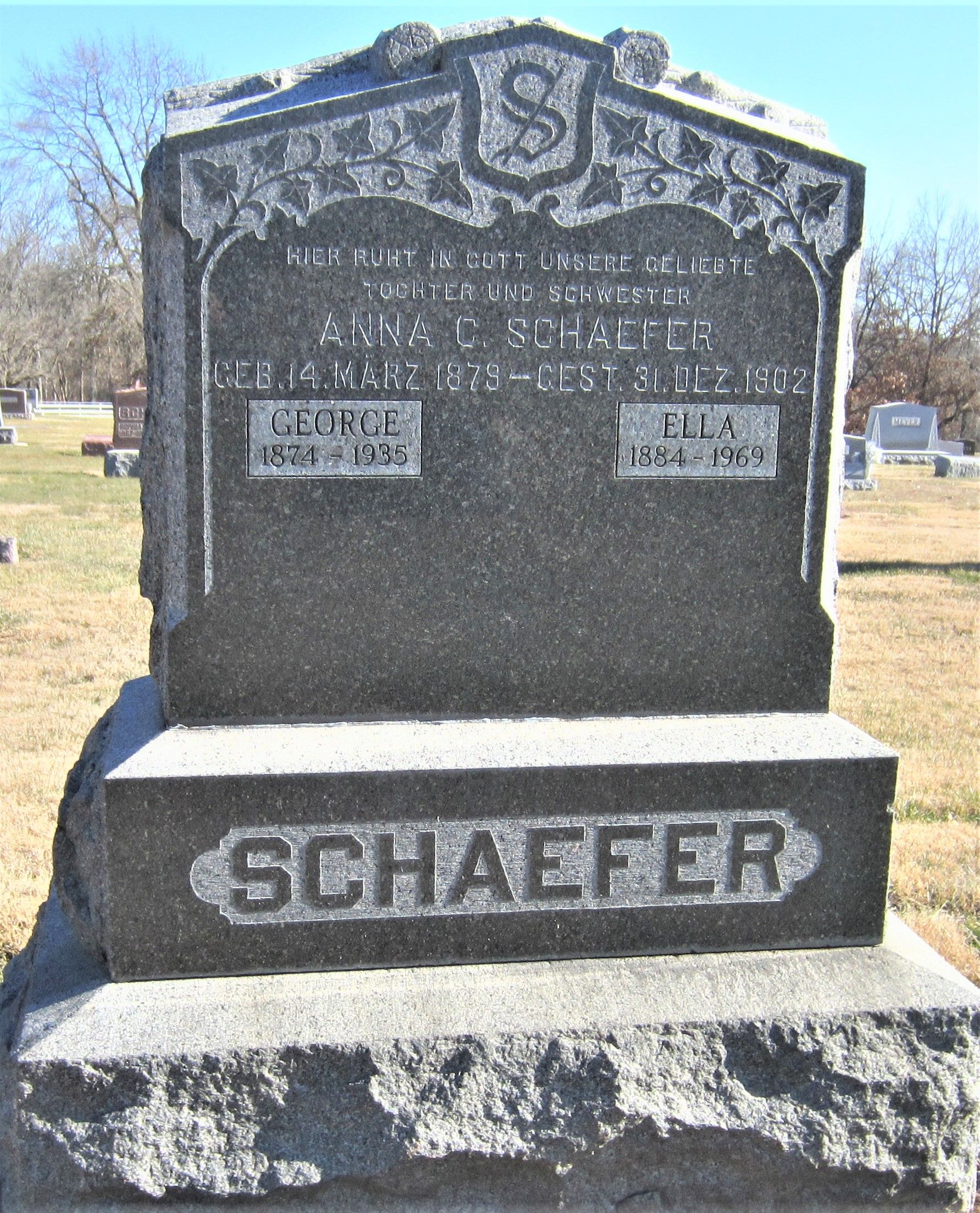 William H. Schaefer were married. She died in 1940, at age ~64.