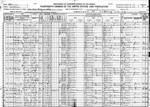 Renken Family 1920 Federal Census Illinois, Lines 93-94