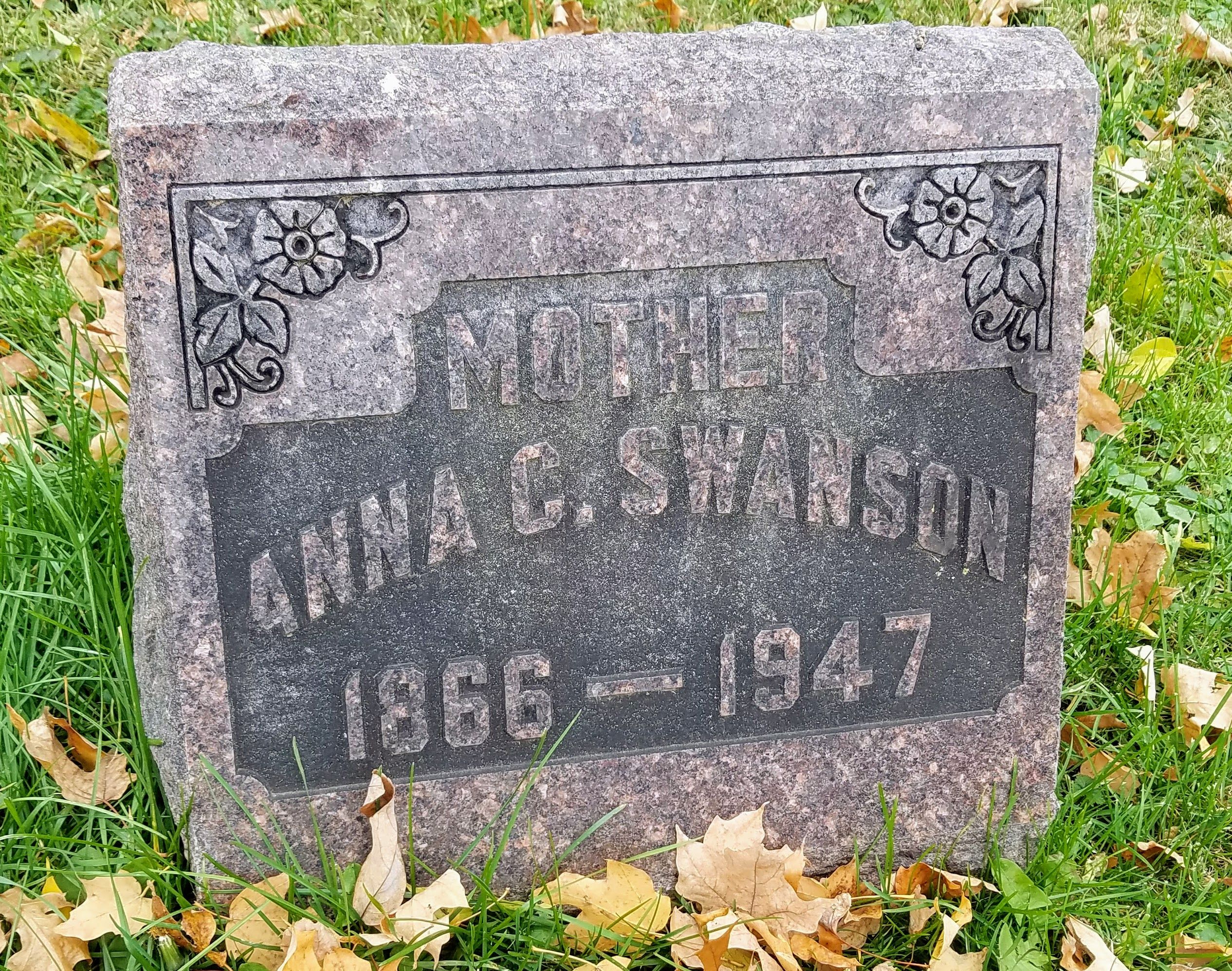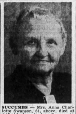 Adolph Victor Swanson were married in 1886 in Leonardville, Riley, Kansas, USA. She died on November 5, 1947, at age 81, in Rock Island, Rock Island, Illinois, USA. She was buried in Chippiannock Cemetery, Rock Island, Illinois.