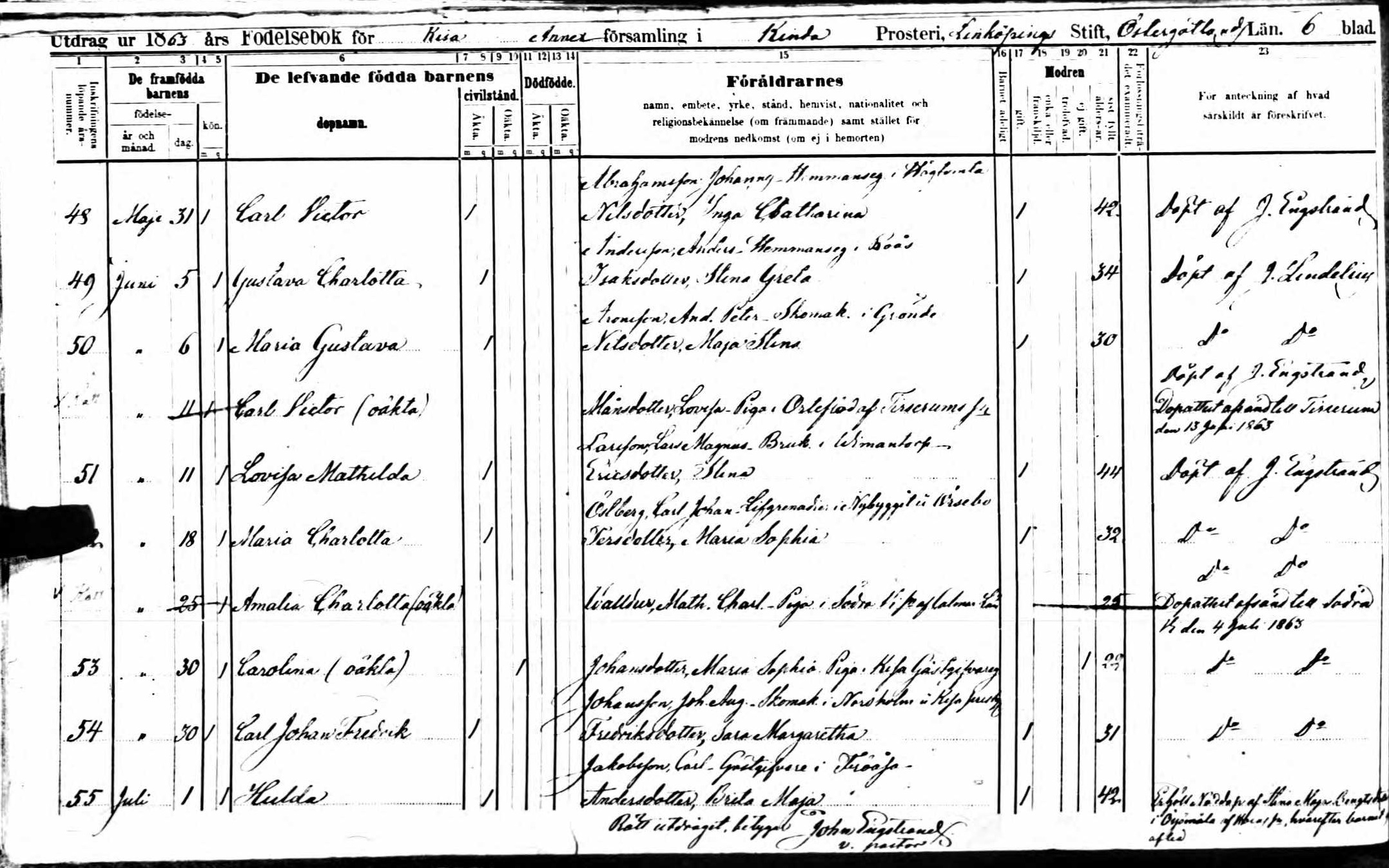 Maria Gustava Andersdotter was born on June 6, 1863 in Kisa, Kinda, Östergötland, Sweden. She and