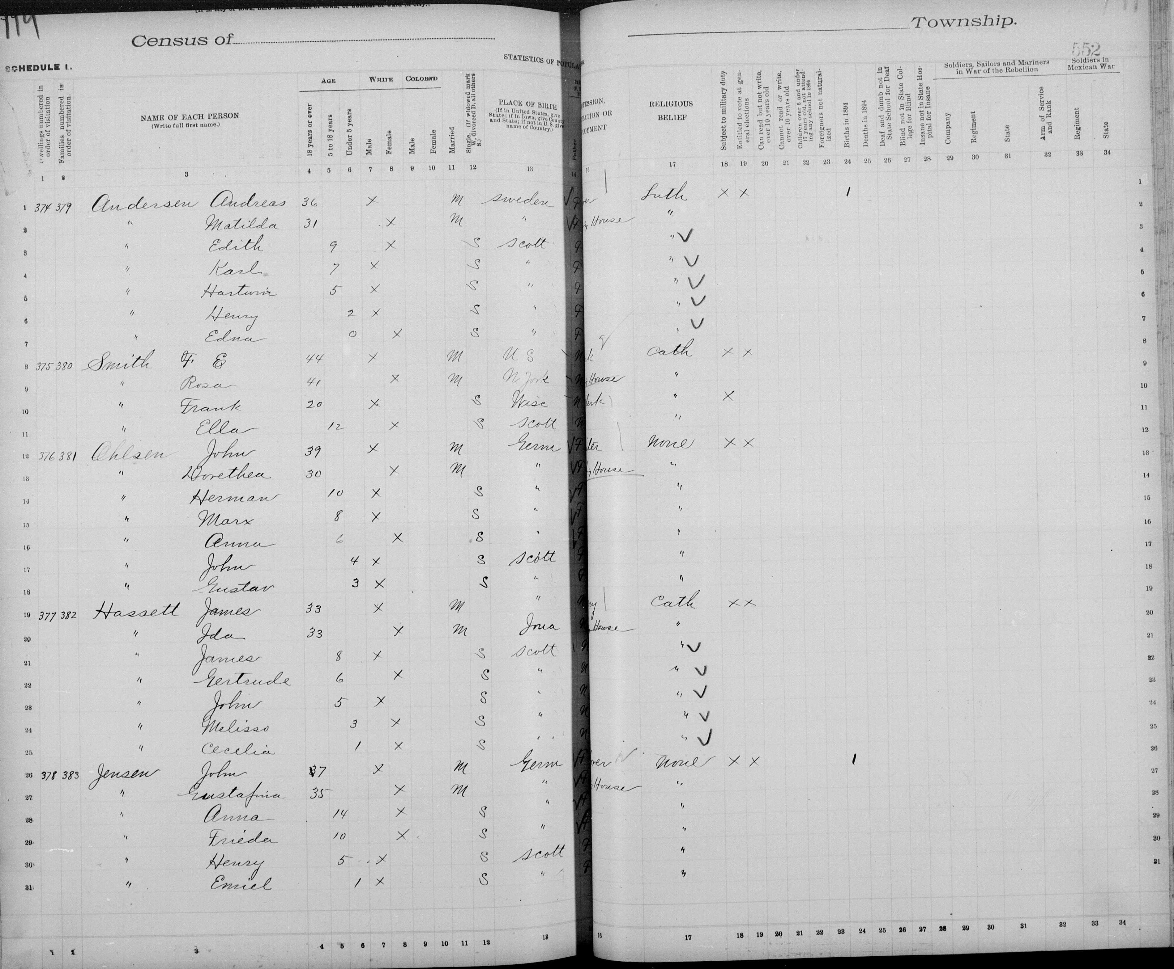 Anderson Family 1900 Federal Census Iowa, Lines 56-63