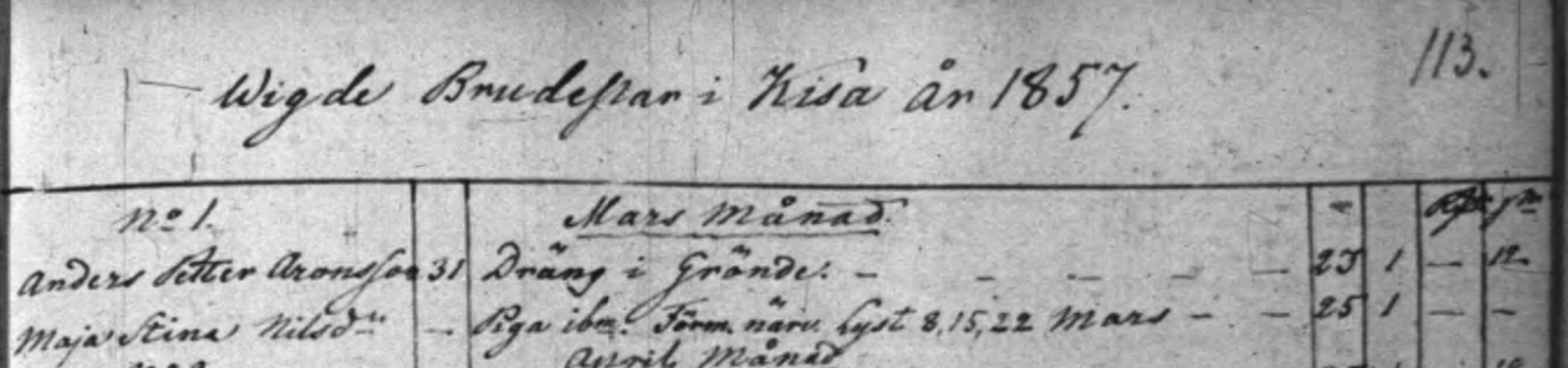 Aron Peter Carlsson was born on September 11, 1814 in Kisa, Kinda, Östergötland, Sweden. He and