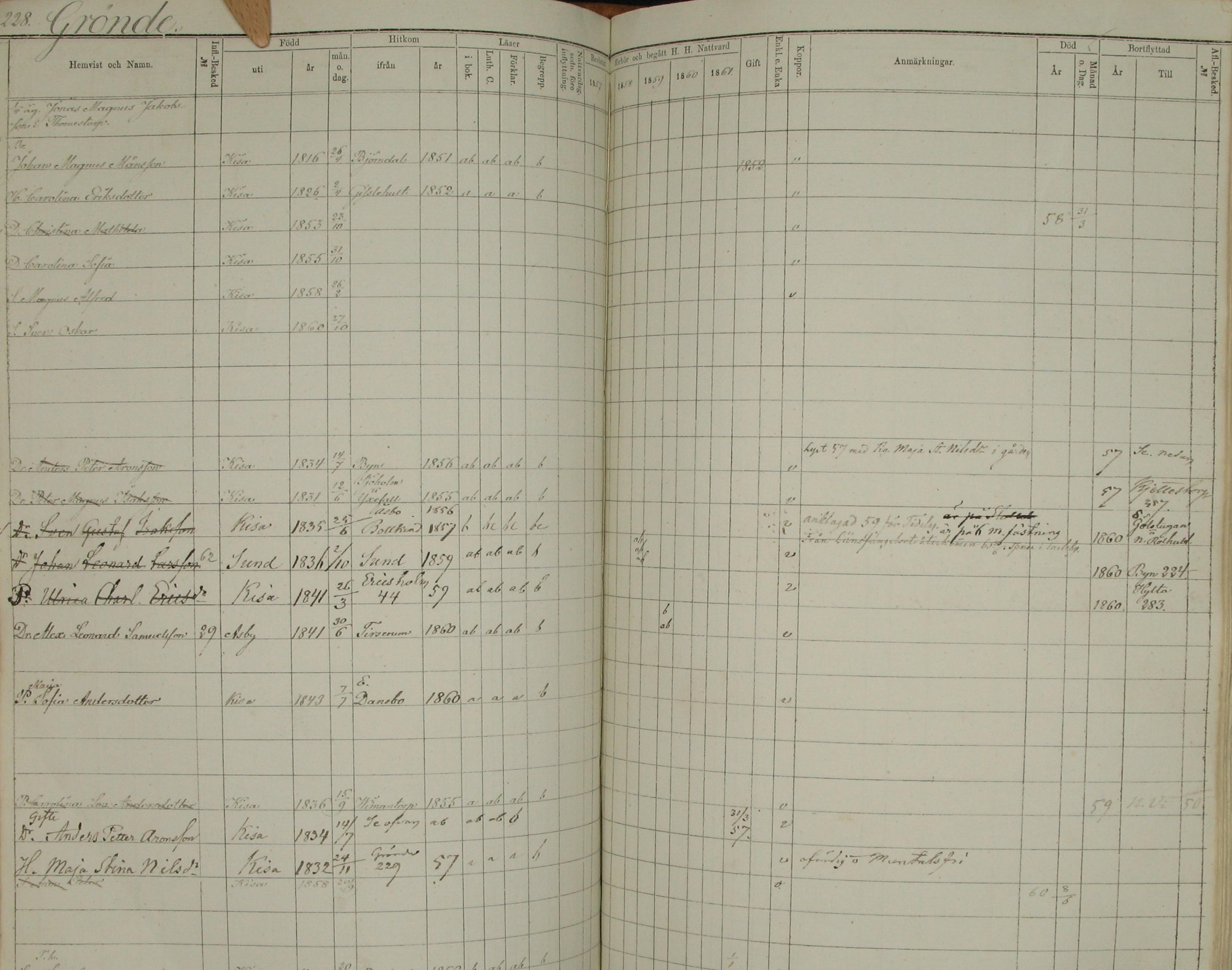 1861-1866 Gronde, Kisa, Sweden Census, Line 15-18