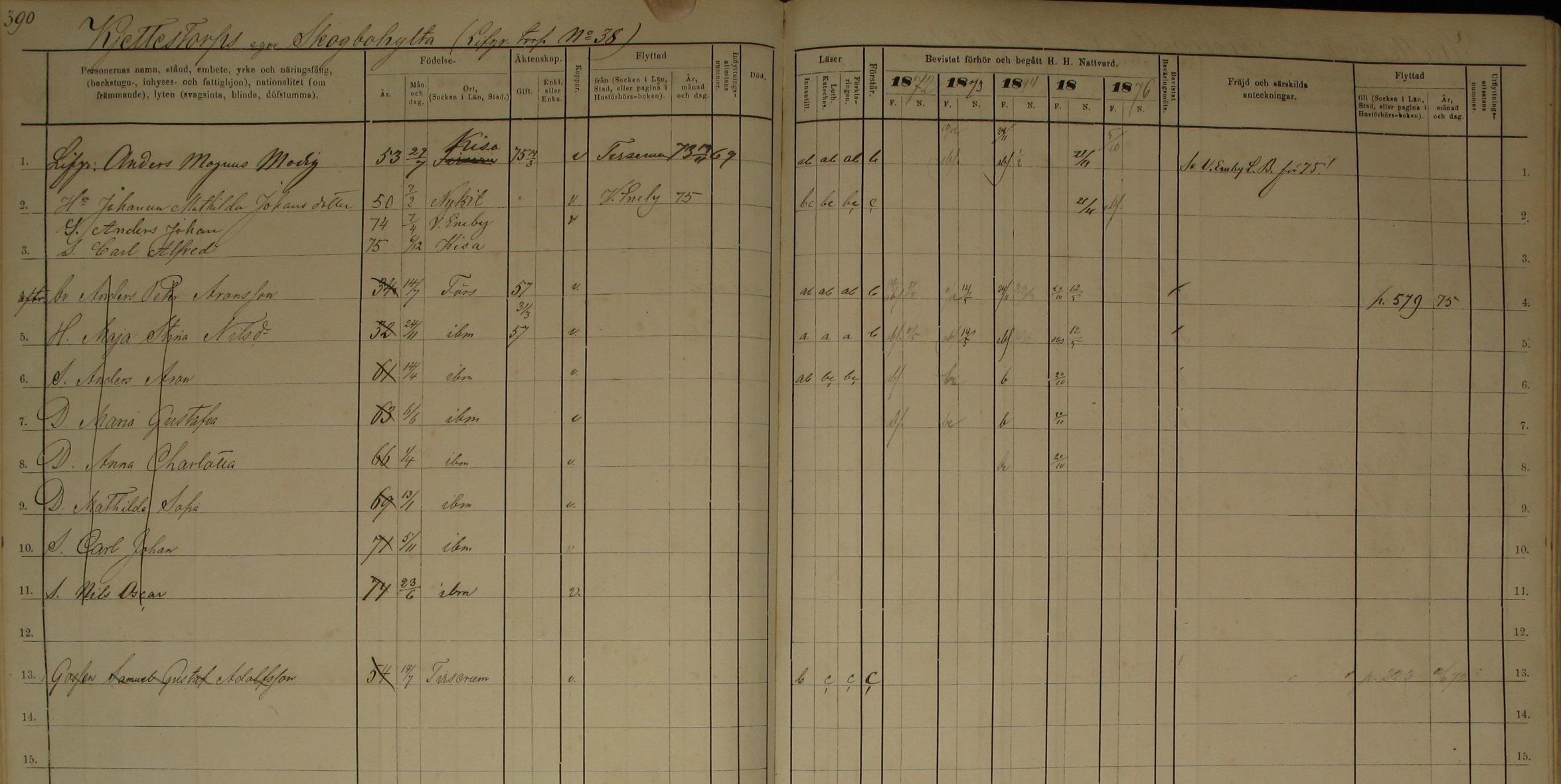 1872-1876 Kättestorp, Skogbohylta, Kisa, Sweden Census, Line 4-11