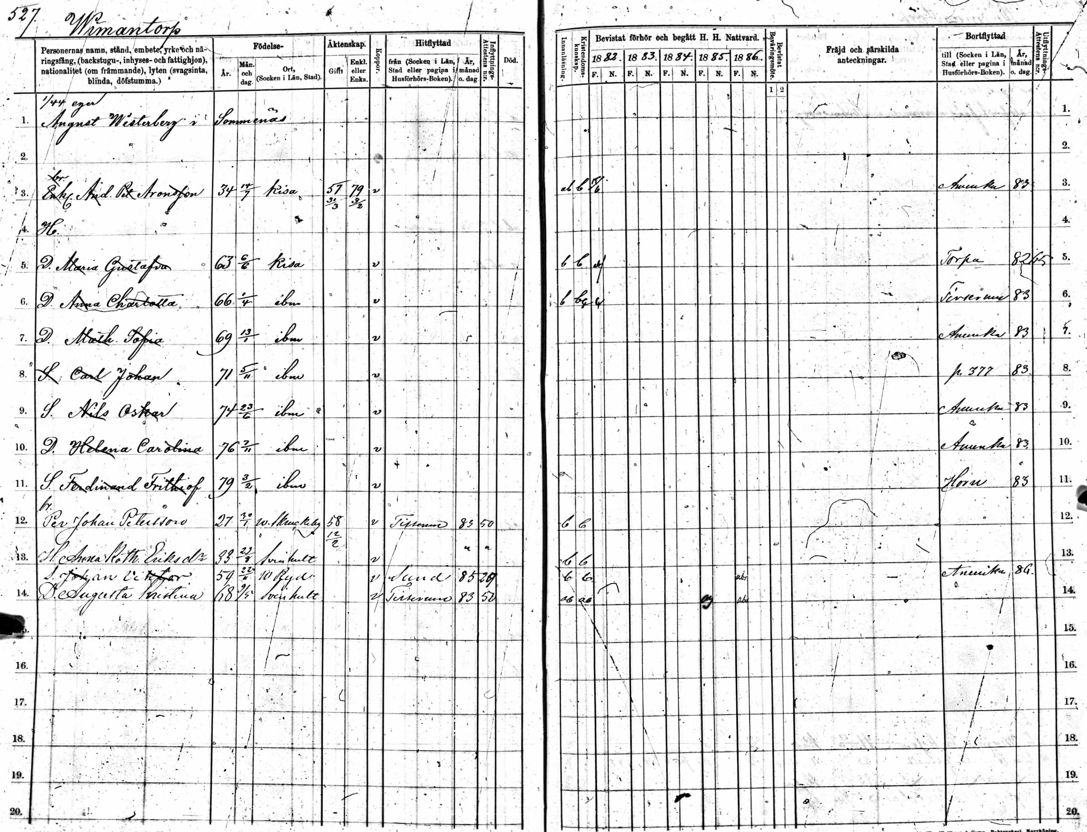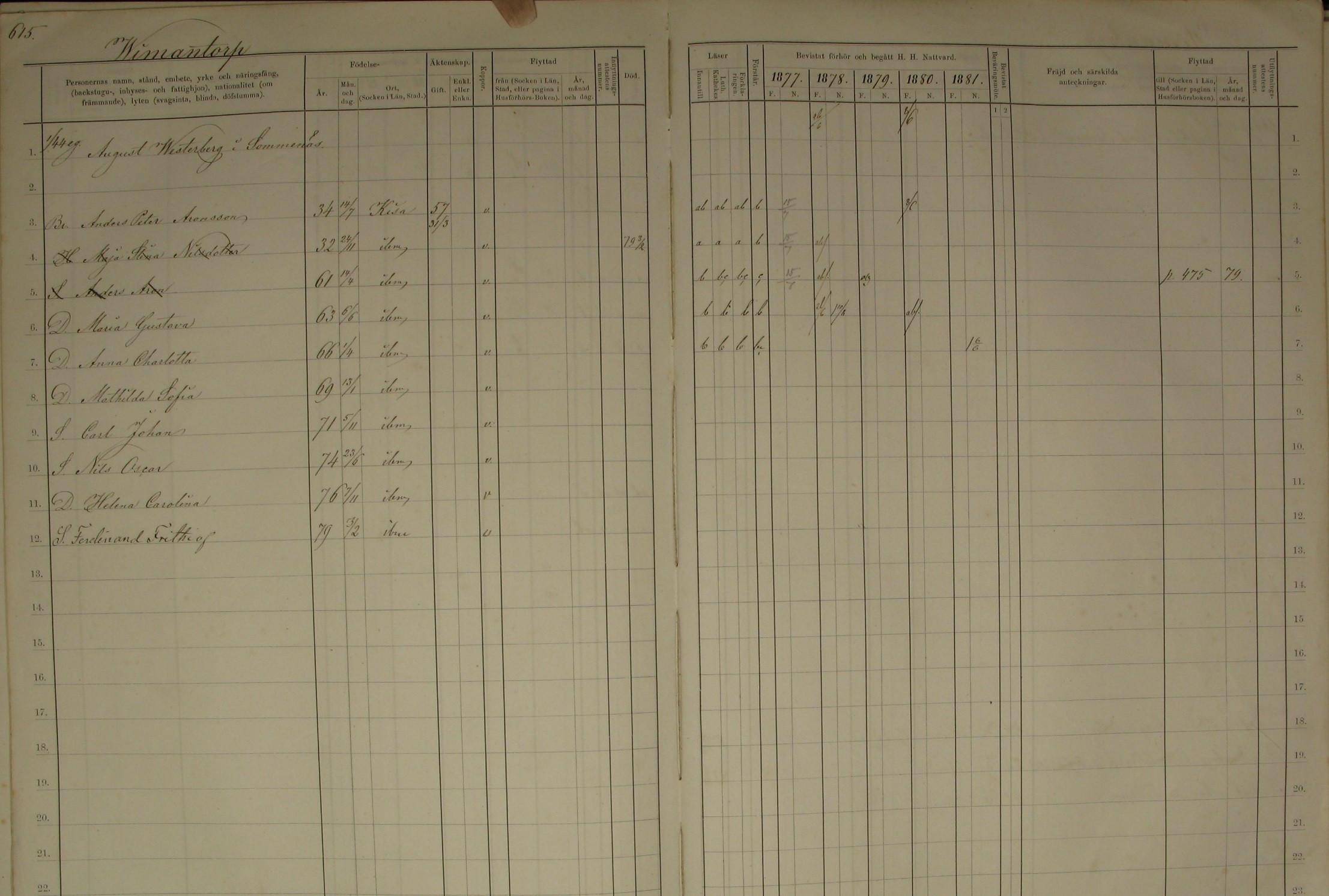 1877-1881 Wimantorp, Kisa, Sweden Census, Line 3-12