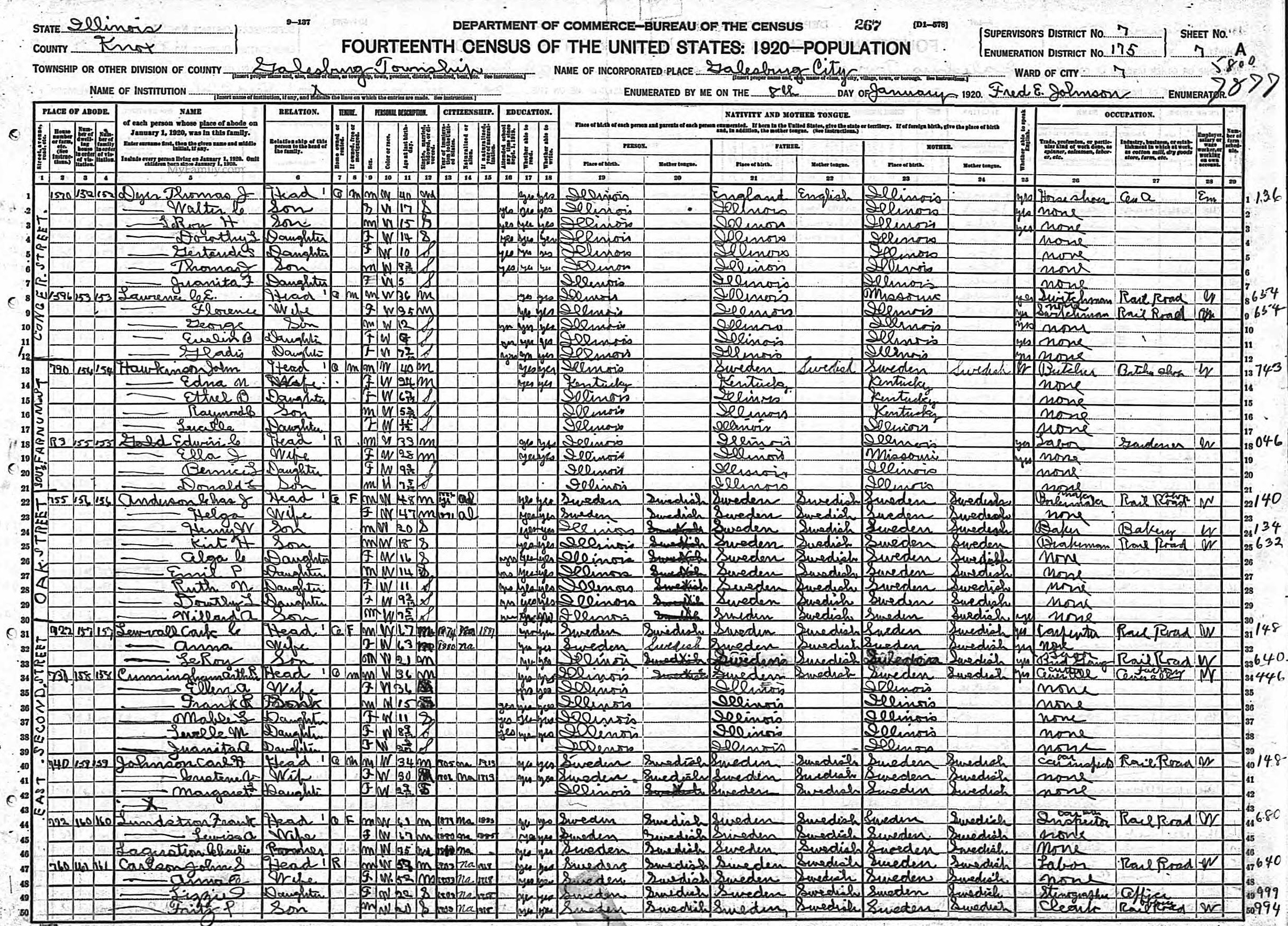 Anderson Family 1920 Federal Census Illinois, Lines 22-30