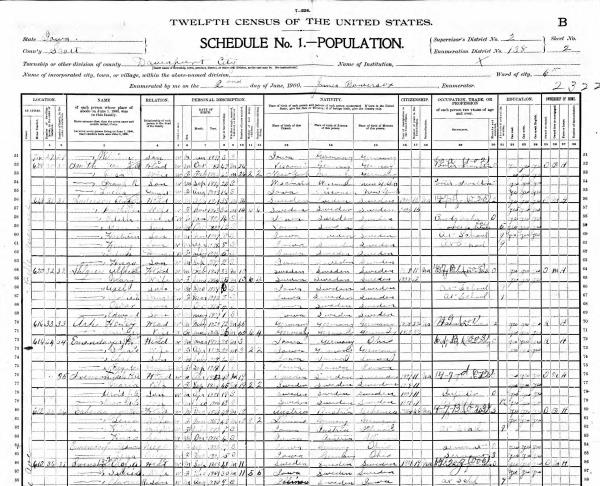 Anderson Family 1910 Federal Census Illinois, Lines 71-82
