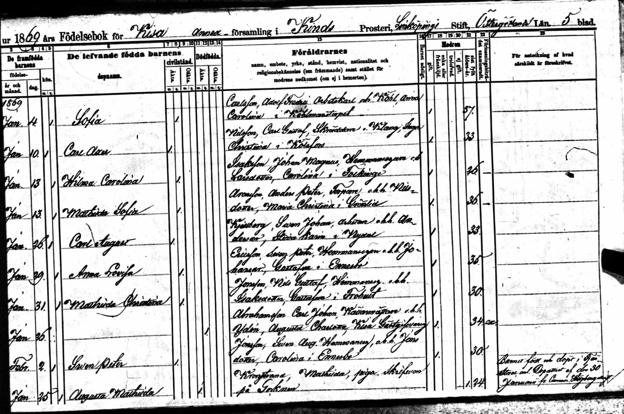 Mathilda Sofia Andersdotter was born on January 13, 1869 in Kisa, Kinda, Östergötland, Sweden. She and