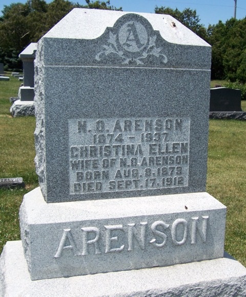 Nils Oscar Aronson were married on July 1, 1896. She died on September 17, 1912, at age 40. She was buried in Orion Lutheran Cemetery, Orion, Illinois.