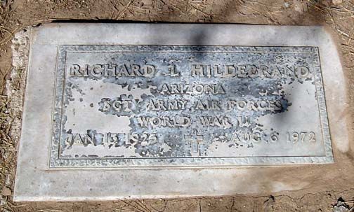 Richard Laverne Hildebrand were married on December 31, 1945 in Kansas City, Wyandotte, Kansas, USA. She died in October 1991, at age 65, in Phoenix, Maricopa, Arizona, USA. She was buried in Greenwood Memory Lawn Cemetery, Phoenix, Arizona.