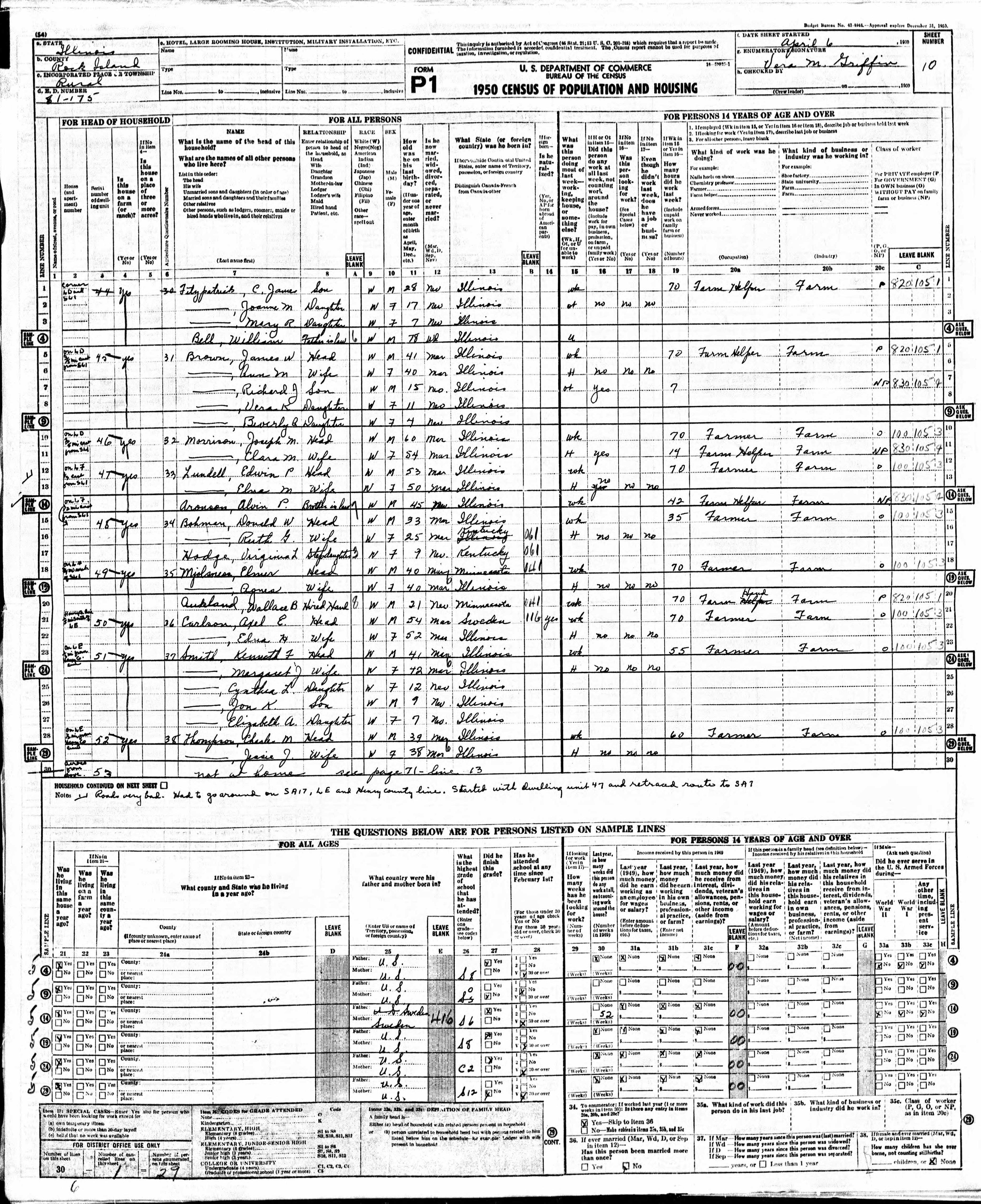 Lundell Family 1950 Federal Census Illinois, Lines 12-14