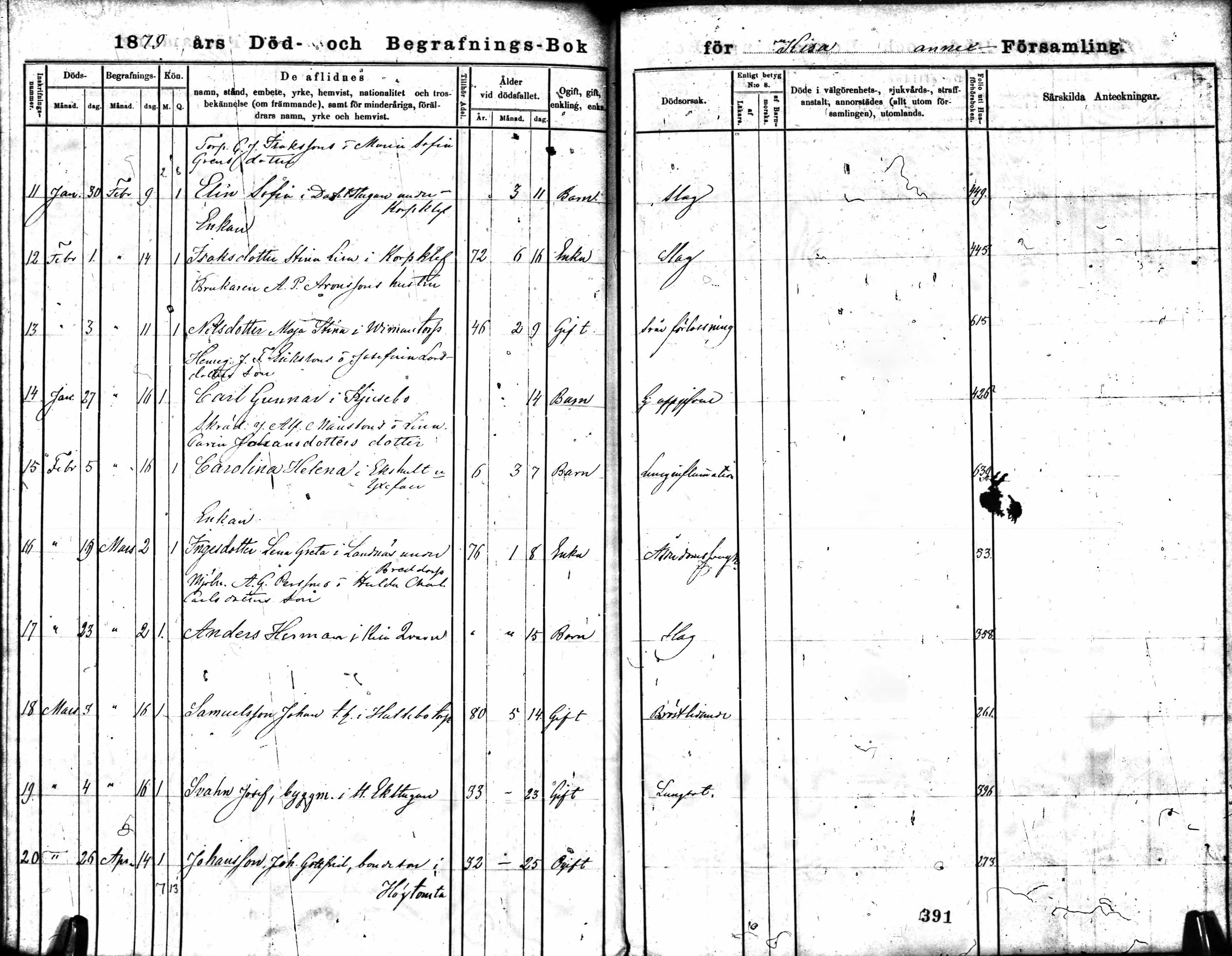 Anders Peter Aronsson were married on March 31, 1857 in Kisa, Kinda, Östergötland, Sweden. She died on February 11, 1879, at age 46, in Kisa, Kinda, Östergötland, Sweden. She was buried in Kisa, Kinda, Östergötland, Sweden.